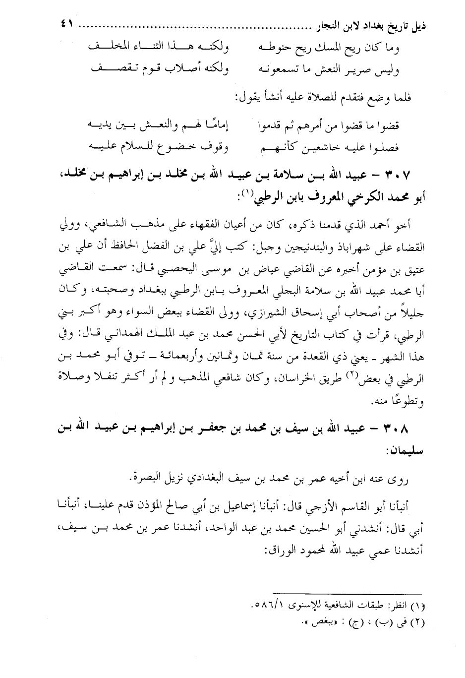 307- عُبَيْد اللَّه بْن سلامة بْن عُبَيْد اللَّه بْن مخلد بْن إِبْرَاهِيم بْن مخلد، أَبُو مُحَمَّد الكرخي المعروف بابن الرطبي [1] :