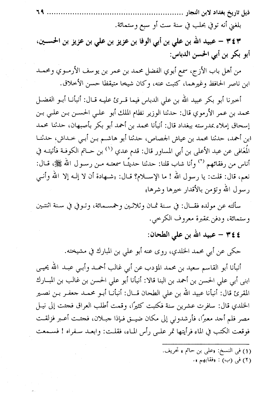 343- عُبَيْد اللَّه بْن عَلِيّ بْن أَبِي الوفا بْن عزيز بْن عَلِيّ بْن عزيز بْن الْحُسَيْن، أَبُو بكر بْن أَبِي الحَسَن الدباس: