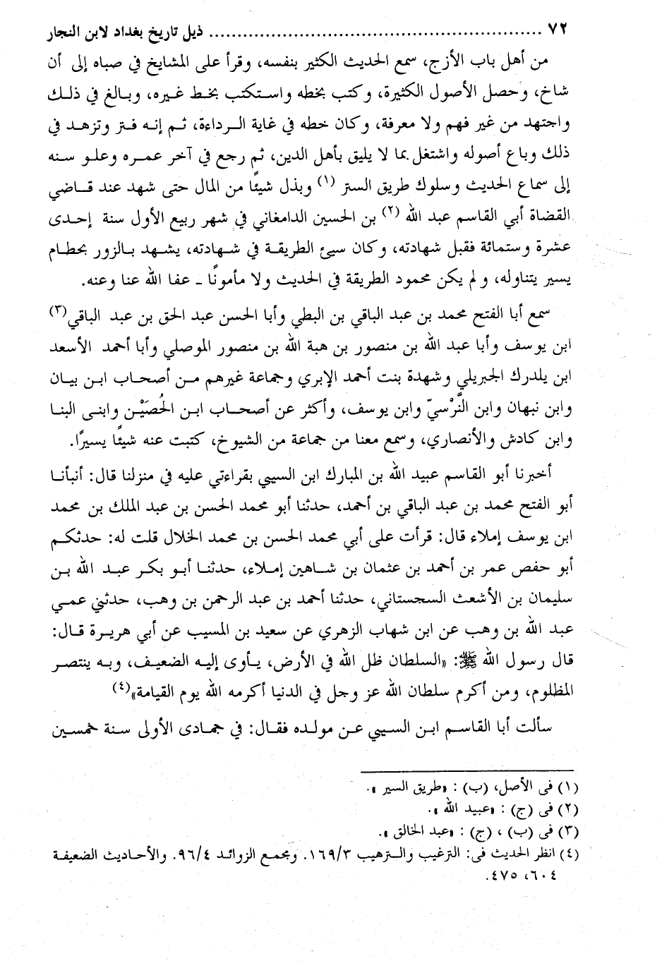 أَخْبَرَنَا أَبُو الْقَاسِمِ عُبَيْدُ اللَّهِ بْنُ الْمُبَارَكِ ابن السيي بقراءتي عليه في منزلنا قَالَ: أَنْبَأَنَا أَبُو الْفَتْحِ مُحَمَّدُ بْنُ عَبْدِ الباقي بن أحمد، حدثنا أَبُو مُحَمَّدٍ الْحَسَنُ بْنُ عَبْدِ الْمَلِكِ بْنِ محمد ابن يُوسُفَ إِمْلاءً قَالَ: قَرَأْتُ عَلَى أَبِي مُحَمَّدٍ الْحَسَنِ بْنِ مُحَمَّدٍ الْخَلالِ قُلْتُ لَهُ: حَدَّثَكُمْ أَبُو حَفْصٍ عُمَرُ بْنُ أَحْمَدَ بْنِ عُثْمَانَ بن شاهين إملاء، حَدَّثَنَا أَبُو بَكْرٍ عَبْدُ اللَّهِ بْنُ سُلَيْمَانَ بْنِ الأَشْعَثِ السِّجِسْتَانِيُّ، حَدَّثَنَا أَحْمَدُ بْنُ عَبْدِ الرَّحْمَنِ بْنِ وَهْبٍ، حَدَّثَنِي عَمِّي عَبْدُ اللَّهِ بْنُ وَهْبٍ عَنِ ابْنِ شِهَابٍ الزُّهْرِيِّ عَنْ سَعِيدِ بْنِ الْمُسَيِّبِ عَنْ أَبِي هُرَيْرَةَ قَالَ: