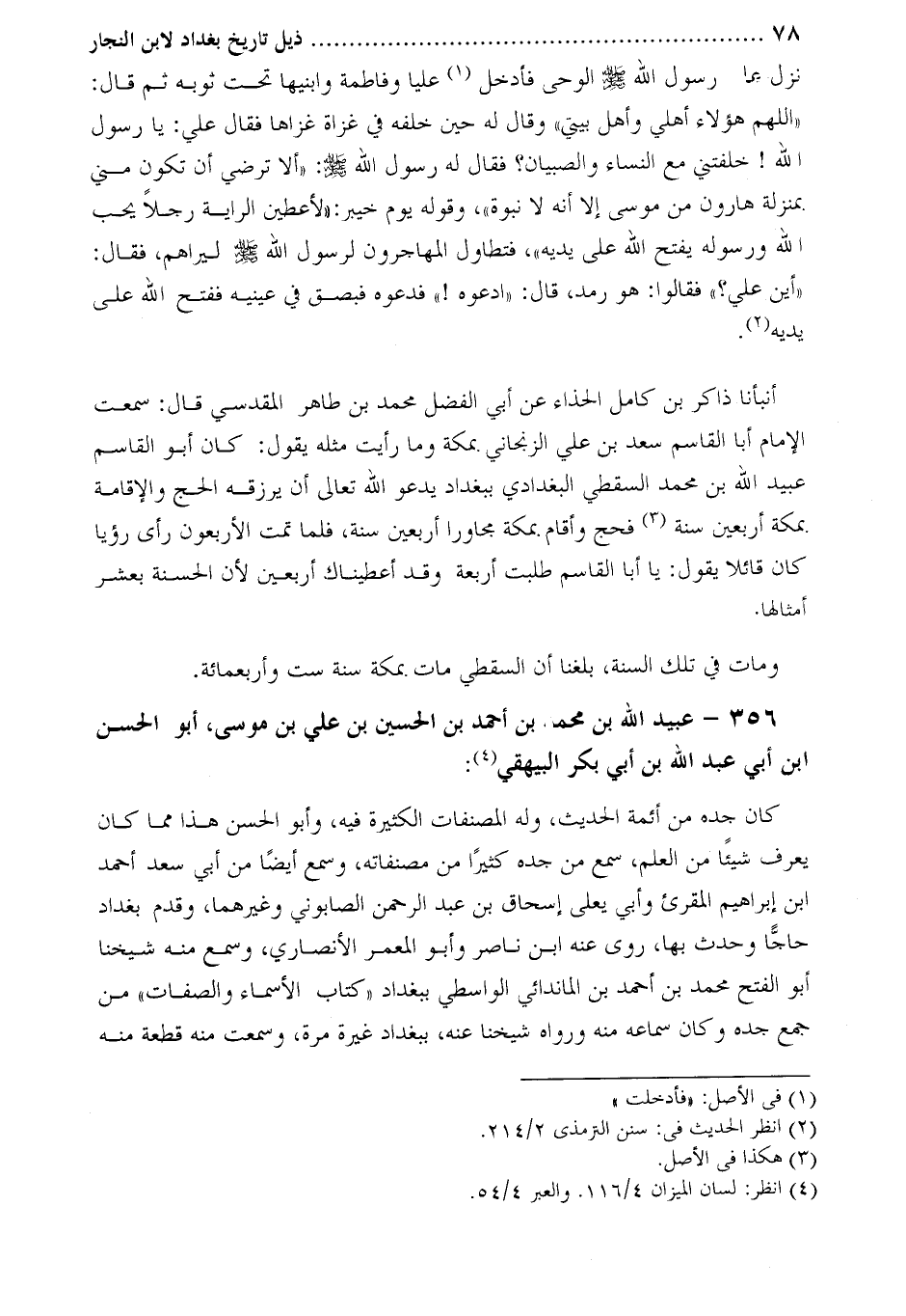 356- عبيد الله بْن مُحمد بْن أحْمَد بْن الْحُسَيْن بْن عَلِيّ بْن موسى، أَبُو الحَسَن ابن أَبِي عَبْد اللَّه بْن أَبِي بكر البيهقي [4] :