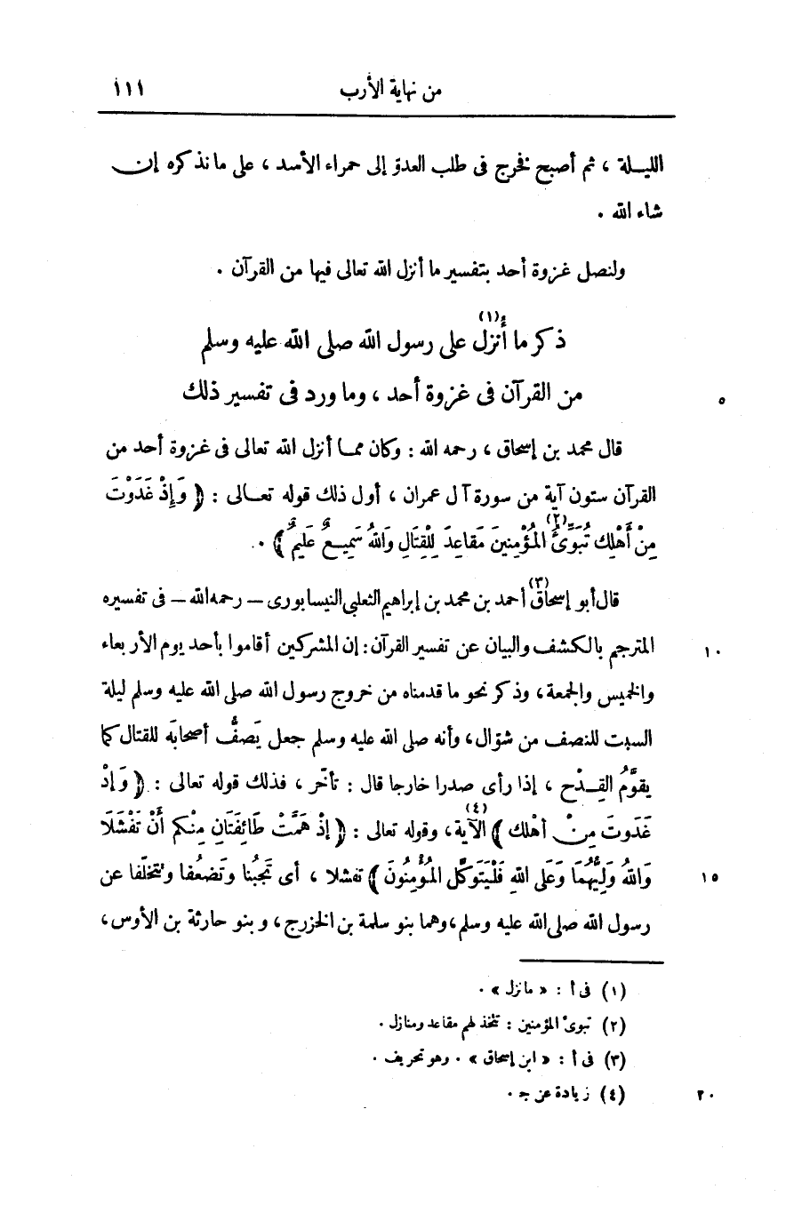 قال محمد بن إسحاق، رحمه الله: وكان مما أنزل الله تعالى فى غزوة أحد من القرآن ستون آية من سورة آل عمران، أول ذلك قوله تعالى: (وَإِذْ غَدَوْتَ مِنْ أَهْلِكَ تُبَوِّئُ «2» الْمُؤْمِنِينَ مَقاعِدَ لِلْقِتالِ وَاللَّهُ سَمِيعٌ عَلِيمٌ)