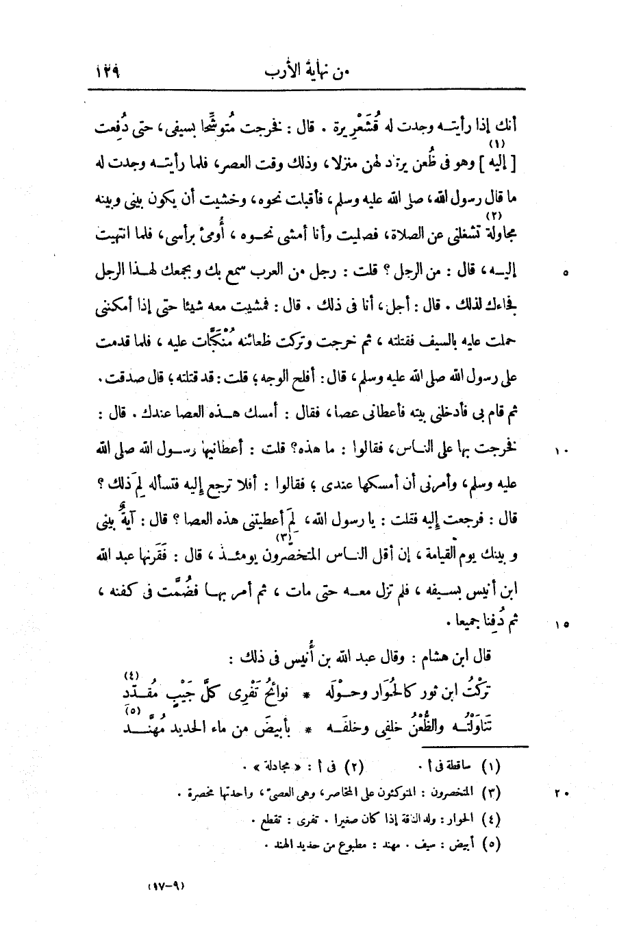 قال ابن هشام: وقال عبد الله بن أنيس فى ذلك: