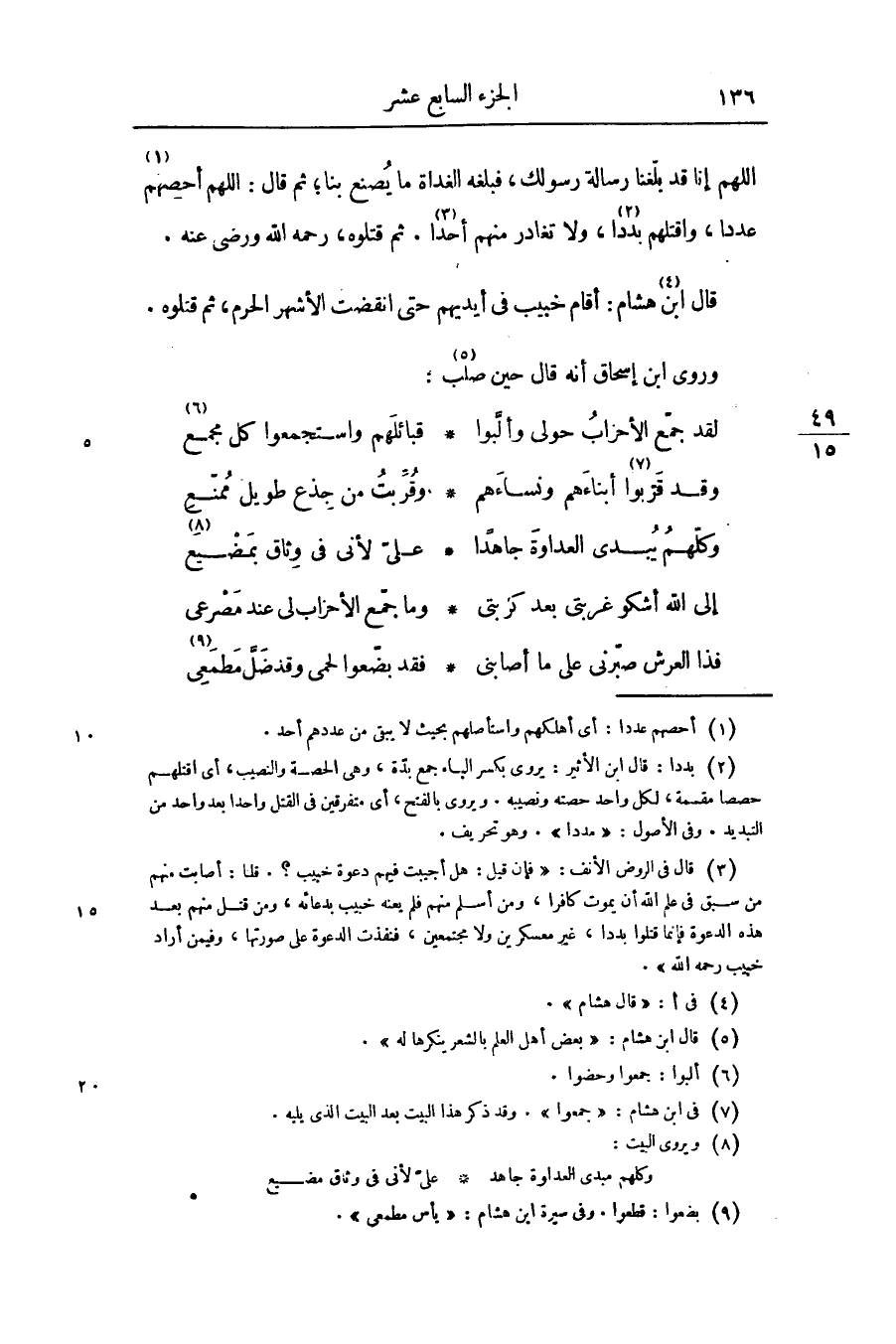 اللهم إنا قد بلّغنا رسالة رسولك، فبلغه الغداة ما يصنع بنا؛ ثم قال: اللهم أحصهم «1» عددا، واقتلهم بددا «2» ، ولا تغادر منهم أحدا «3» . ثم قتلوه، رحمه الله ورضى عنه.