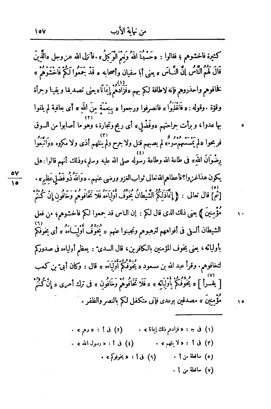 [ثم «5» ] قال تعالى: (إِنَّما ذلِكُمُ الشَّيْطانُ يُخَوِّفُ أَوْلِياءَهُ فَلا تَخافُوهُمْ وَخافُونِ إِنْ كُنْتُمْ مُؤْمِنِينَ)