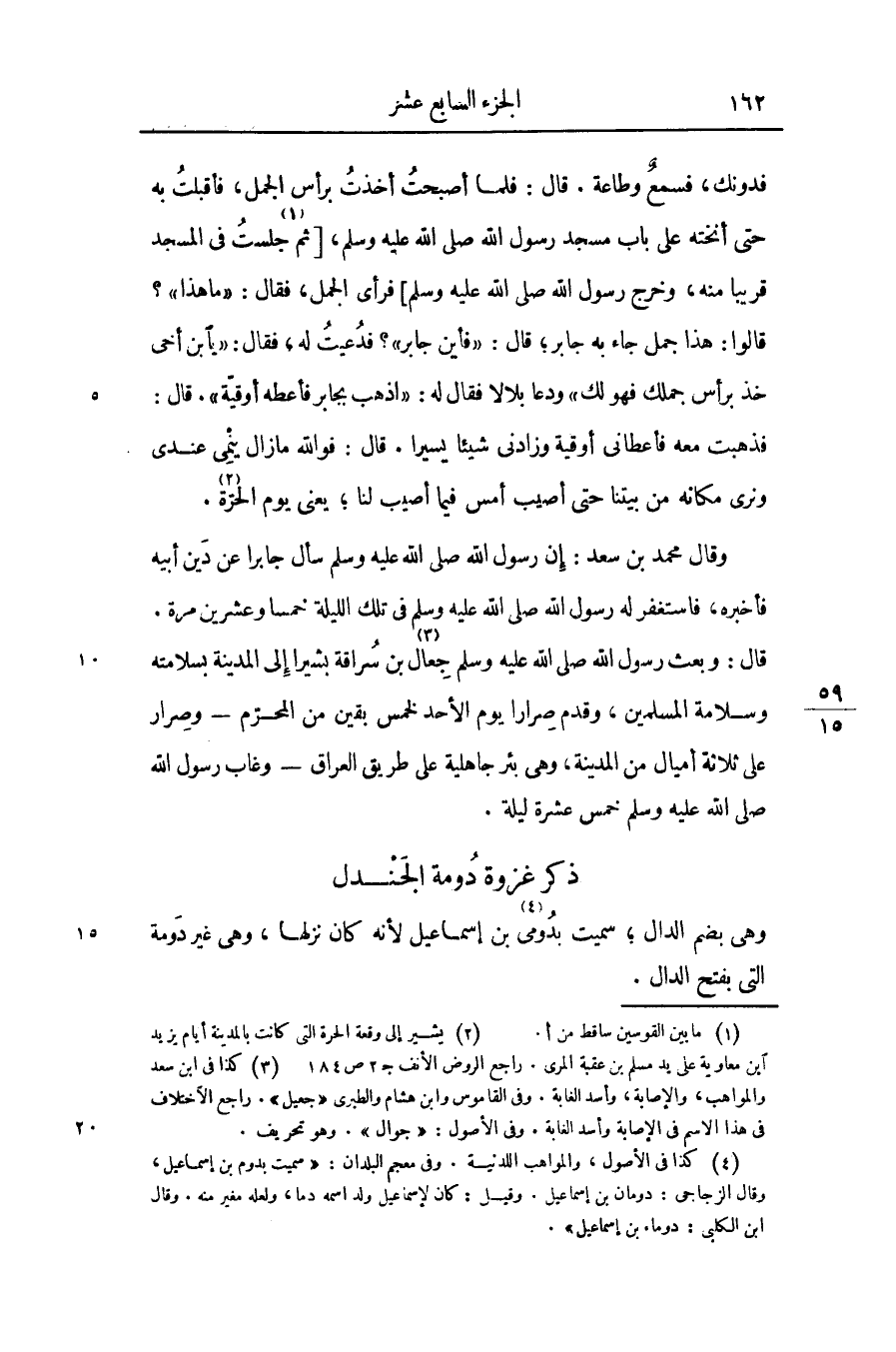 بن سراقة بشيرا إلى المدينة بسلامته وسلامة المسلمين، وقدم صرارا يوم الأحد لخمس بقين من المحرّم- وصرار على ثلاثة أميال من المدينة، وهى بئر جاهلية على طريق العراق- وغاب رسول الله صلّى الله عليه وسلّم خمس عشرة ليلة.