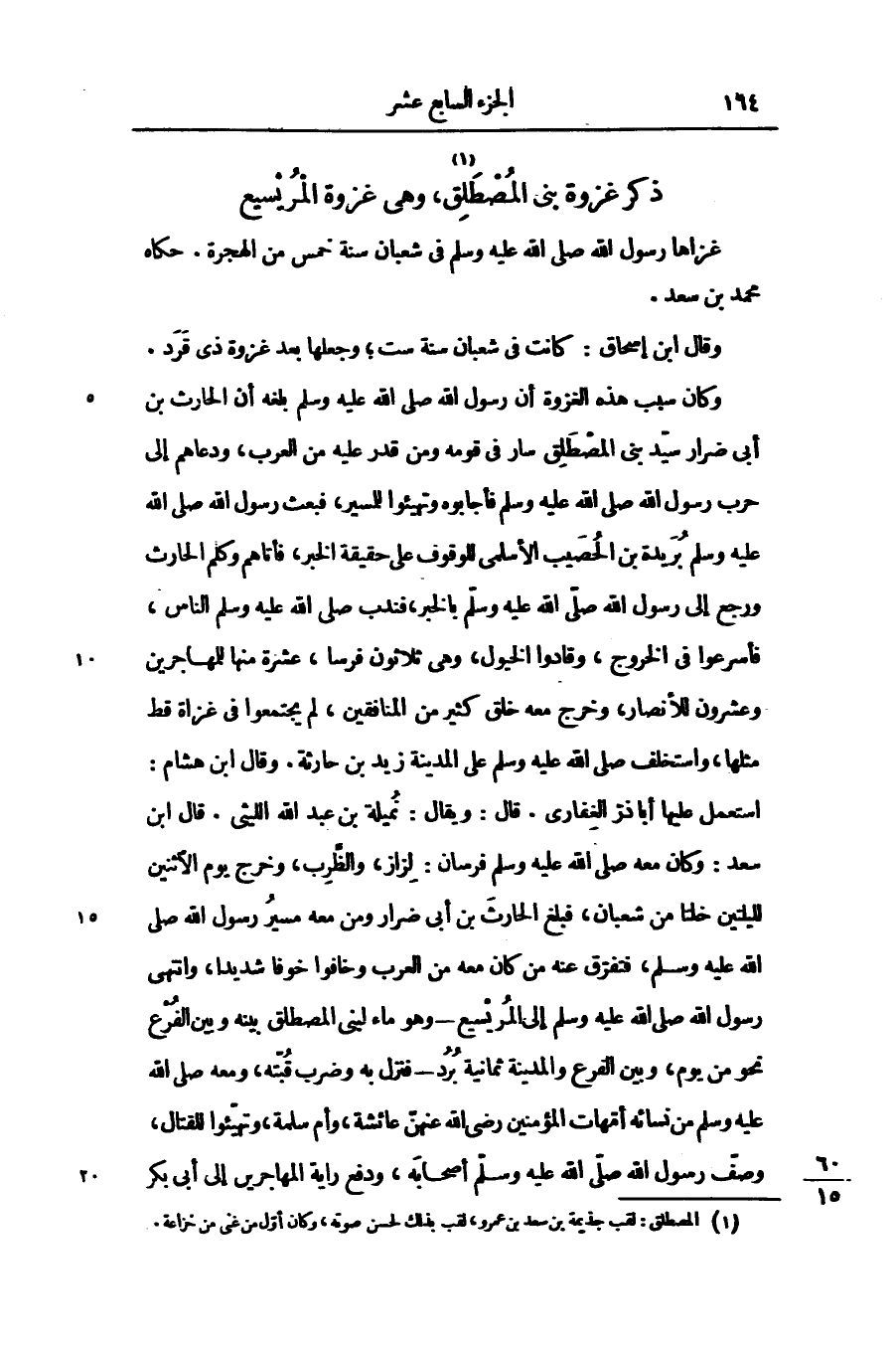 وكان سبب هذه الغزوة أن رسول الله صلّى الله عليه وسلّم بلغه أن الحارث بن أبى ضرار سيّد بنى المصطلق سار فى قومه ومن قدر عليه من العرب، ودعاهم إلى حرب رسول الله صلّى الله عليه وسلّم فأجابوه وتهيئوا للمسير، فبعث رسول الله صلّى الله عليه وسلّم بريدة بن الحصيب الأسلمى للوقوف على حقيقة الخبر، فأتاهم وكلم الحارث ورجع إلى رسول الله صلّى الله عليه وسلّم بالخبر، فندب صلّى الله عليه وسلّم الناس، فأسرعوا فى الخروج، وقادوا الخيول، وهى ثلاثون فرسا، عشرة منها للمهاجرين وعشرون للأنصار، وخرج معه خلق كثير من المنافقين، لم يجتمعوا فى غزاة قط مثلها، واستخلف صلّى الله عليه وسلّم على المدينة زيد بن حارثة. وقال ابن هشام: