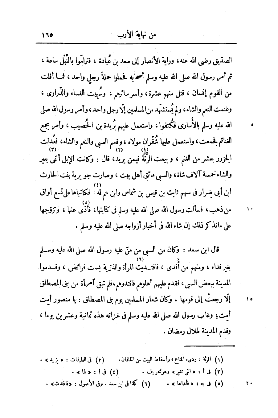 المرأة والذرّيّة بست فرائض، وقدموا المدينة ببعض السبى، فقدم عليهم أهلوهم فافتدوهم، فلم تبق امرأة من بنى المصطلق إلّا رجعت إلى قومها. وكان شعار المسلمين يوم بنى المصطلق: يا منصور أمت أمت؛ وغاب رسول الله صلّى الله عليه وسلّم فى غزاته هذه ثمانية وعشرين يوما، وقدم المدينة لهلال رمضان.