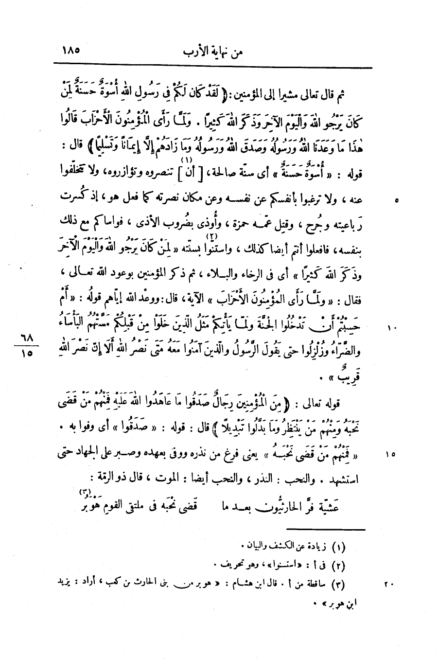 قوله تعالى: (مِنَ الْمُؤْمِنِينَ رِجالٌ صَدَقُوا ما عاهَدُوا اللَّهَ عَلَيْهِ فَمِنْهُمْ مَنْ قَضى نَحْبَهُ وَمِنْهُمْ مَنْ يَنْتَظِرُ وَما بَدَّلُوا تَبْدِيلًا)
