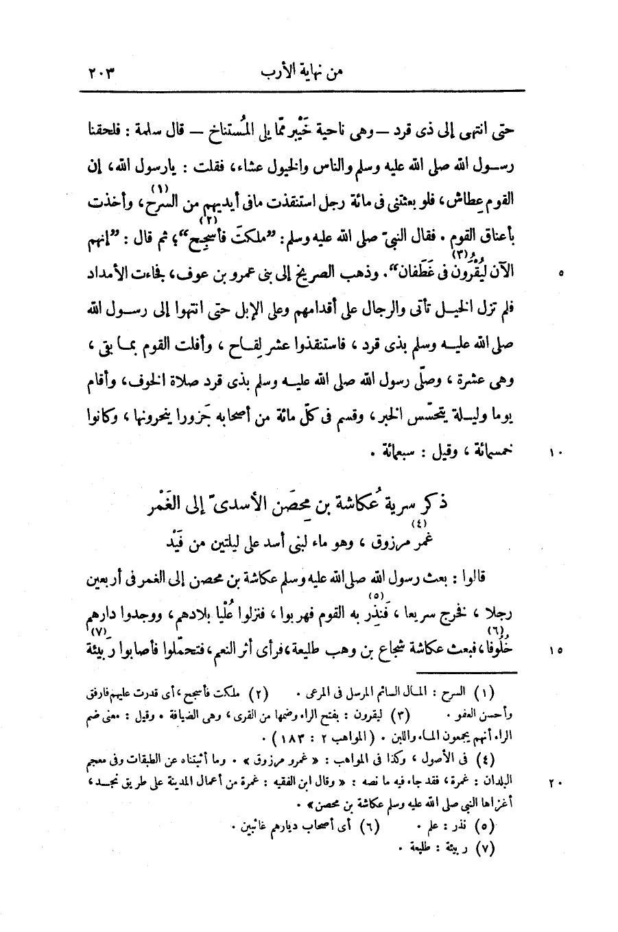 قالوا: بعث رسول الله صلّى الله عليه وسلّم عكاشة بن محصن إلى الغمر فى أربعين رجلا، فخرج سريعا، فنذر «5» به القوم فهربوا، فنزلوا عليا بلادهم، ووجدوا دارهم خلوفا «6» ، فبعث عكاشة شجاع بن وهب طليعة، فرأى أثر النعم، فتحمّلوا فأصابوا ربيئة «7»