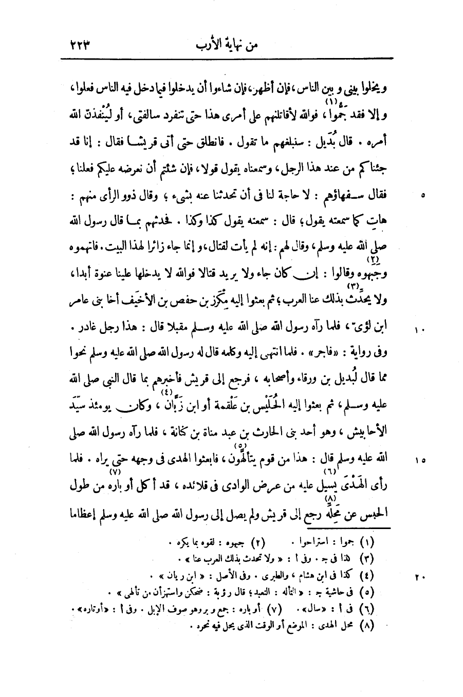 ويخلوا بينى وبين الناس، فإن أظهر، فإن شاءوا أن يدخلوا فيما دخل فيه الناس فعلوا، وإلّا فقد جمّوا «1» ، فو الله لأقاتلنهم على أمرى هذا حتى تنفرد سالفتى، أو لينفذنّ الله أمره. قال بديل: سنبلغهم ما تقول. فانطلق حتى أتى قريشا فقال: إنا قد جئناكم من عند هذا الرجل، وسمعناه يقول قولا، فإن شئتم أن نعرضه عليكم فعلنا؛ فقال سفهاؤهم: لا حاجة لنا فى أن تحدثنا عنه بشىء؛ وقال ذوو الرأى منهم: