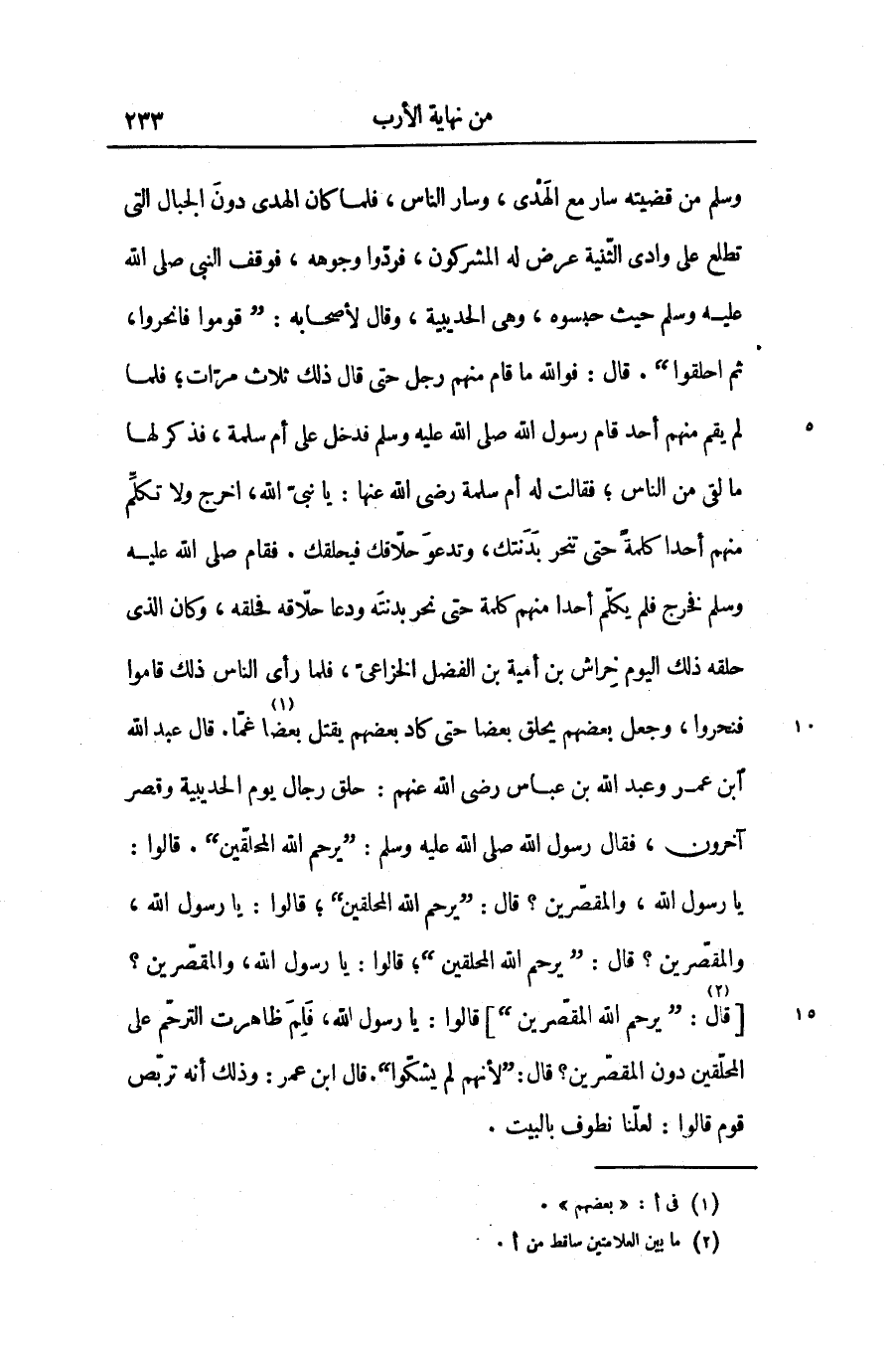 يا رسول الله، والمقصّرين؟ قال: «يرحم الله المحلقين» ؛ قالوا: يا رسول الله، والمقصّرين؟ قال: «يرحم الله المحلقين» ؛ قالوا: يا رسول الله، والمقصّرين؟