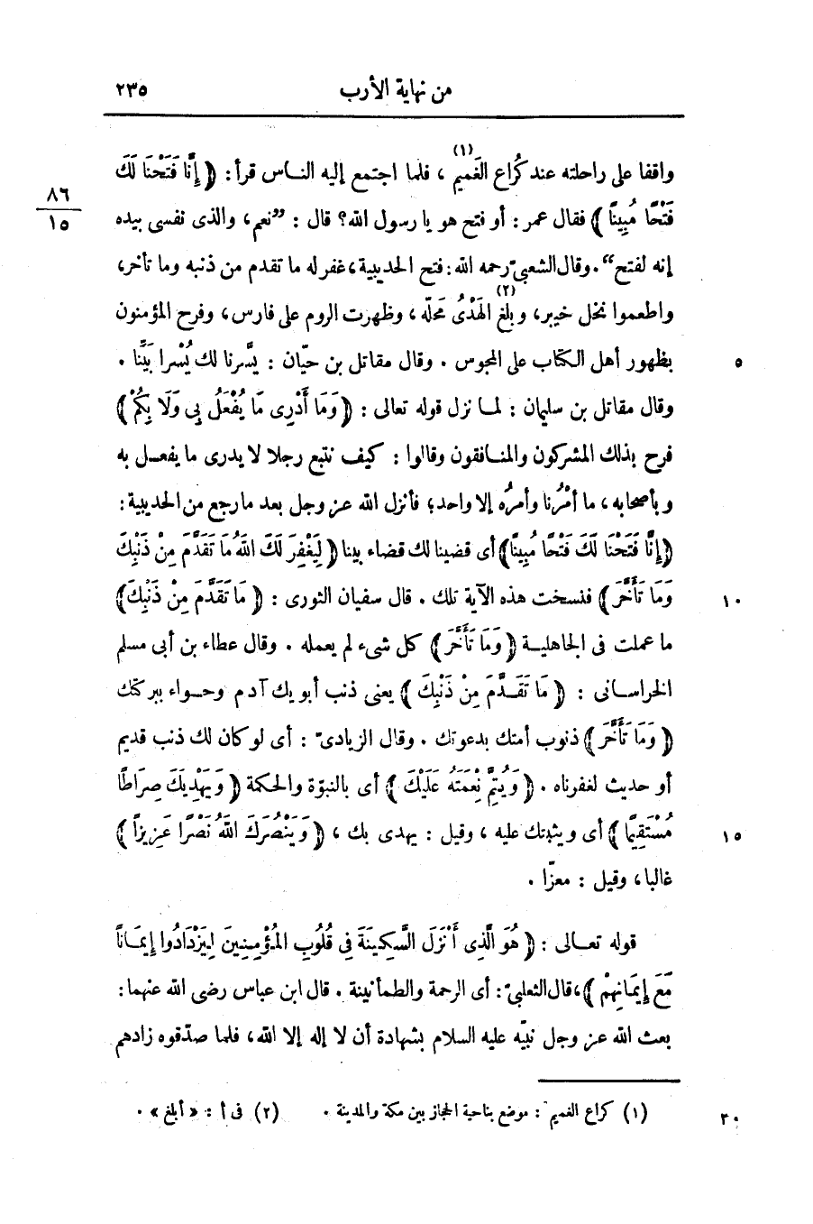 واقفا على راحلته عند كراع الغميم «1» ، فلما اجتمع إليه الناس قرأ: (إِنَّا فَتَحْنا لَكَ فَتْحاً مُبِيناً)