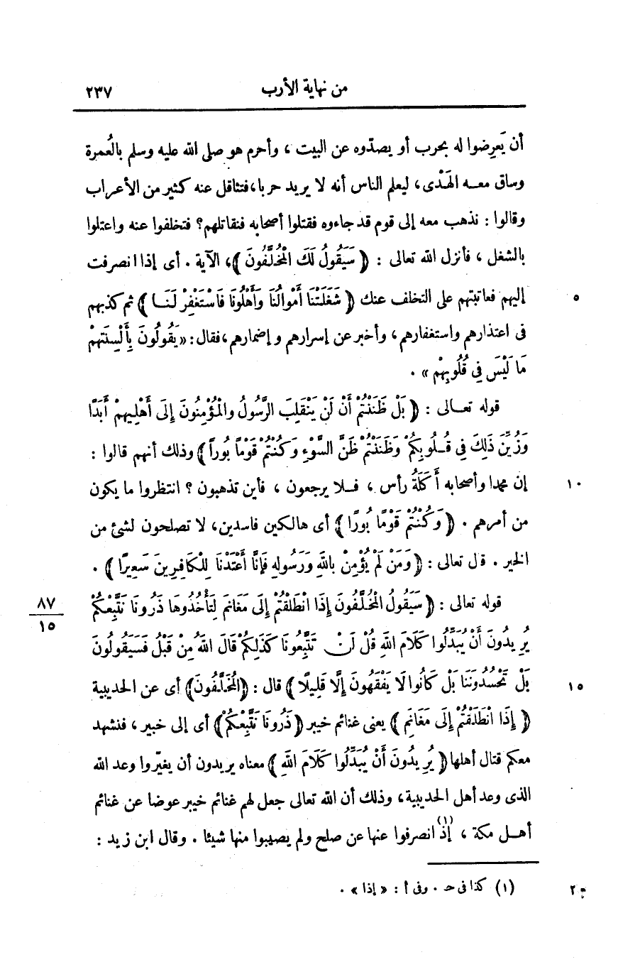 أن يعرضوا له بحرب أو يصدّوه عن البيت، وأحرم هو صلّى الله عليه وسلّم بالعمرة وساق معه الهدى، ليعلم الناس أنه لا يريد حربا، فتثاقل عنه كثير من الأعراب وقالوا: نذهب معه إلى قوم قد جاءوه فقتلوا أصحابه فنقاتلهم؟ فتخلفوا عنه واعتلوا بالشغل، فأنزل الله تعالى: (سَيَقُولُ لَكَ الْمُخَلَّفُونَ)