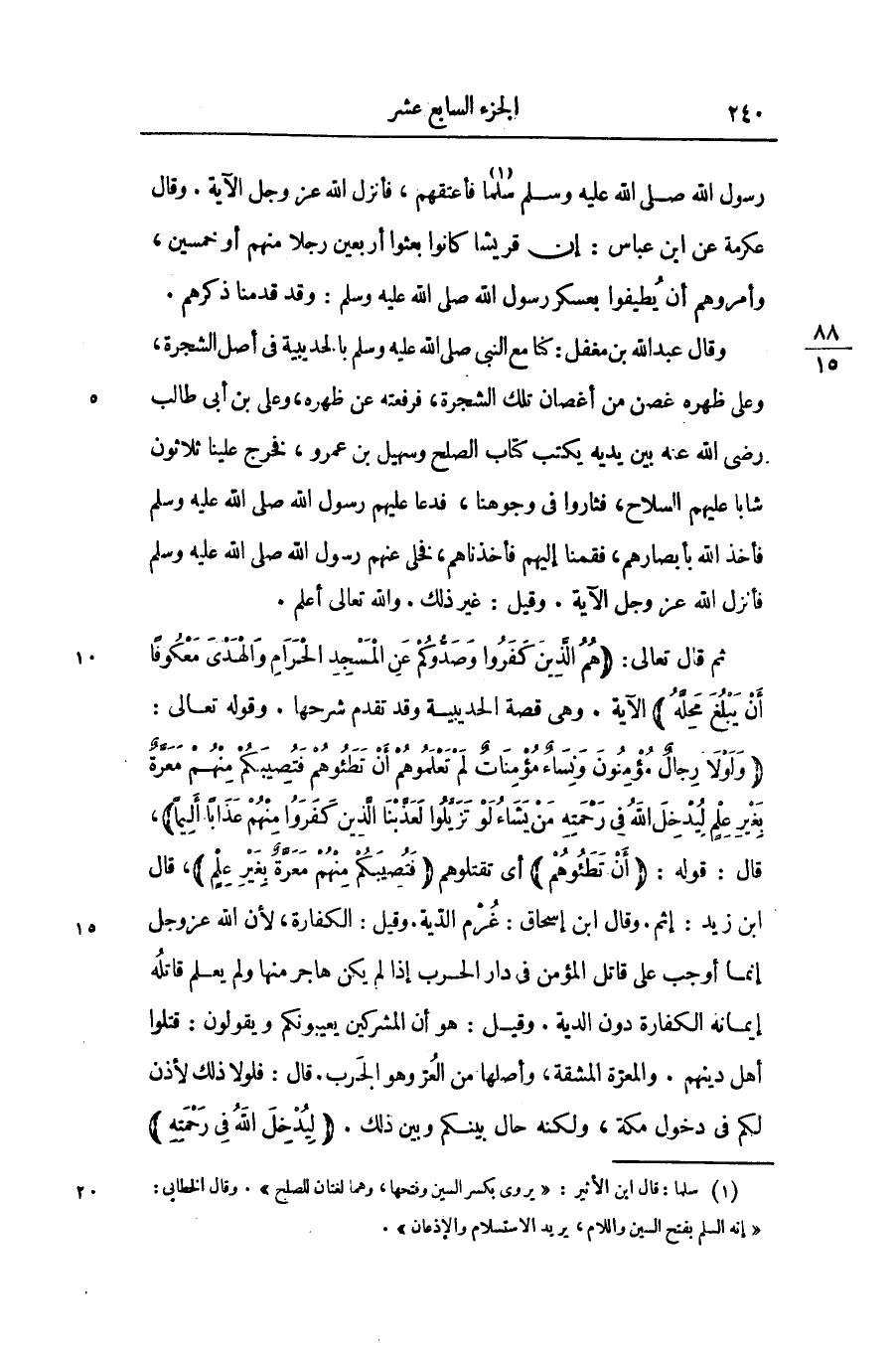 ، قال ابن زيد: إثم. وقال ابن إسحاق: غرم الدّية. وقيل: الكفارة، لأن الله عز وجل إنما أوجب على قاتل المؤمن فى دار الحرب إذا لم يكن هاجر منها ولم يعلم قاتله إيمانه الكفارة دون الدية. وقيل: هو أن المشركين يعيبونكم ويقولون: قتلوا أهل دينهم. والمعرّة المشقة، وأصلها من العرّ وهو الجرب. قال: فلولا ذلك لأذن لكم فى دخول مكة، ولكنه حال بينكم وبين ذلك. (لِيُدْخِلَ اللَّهُ فِي رَحْمَتِهِ)