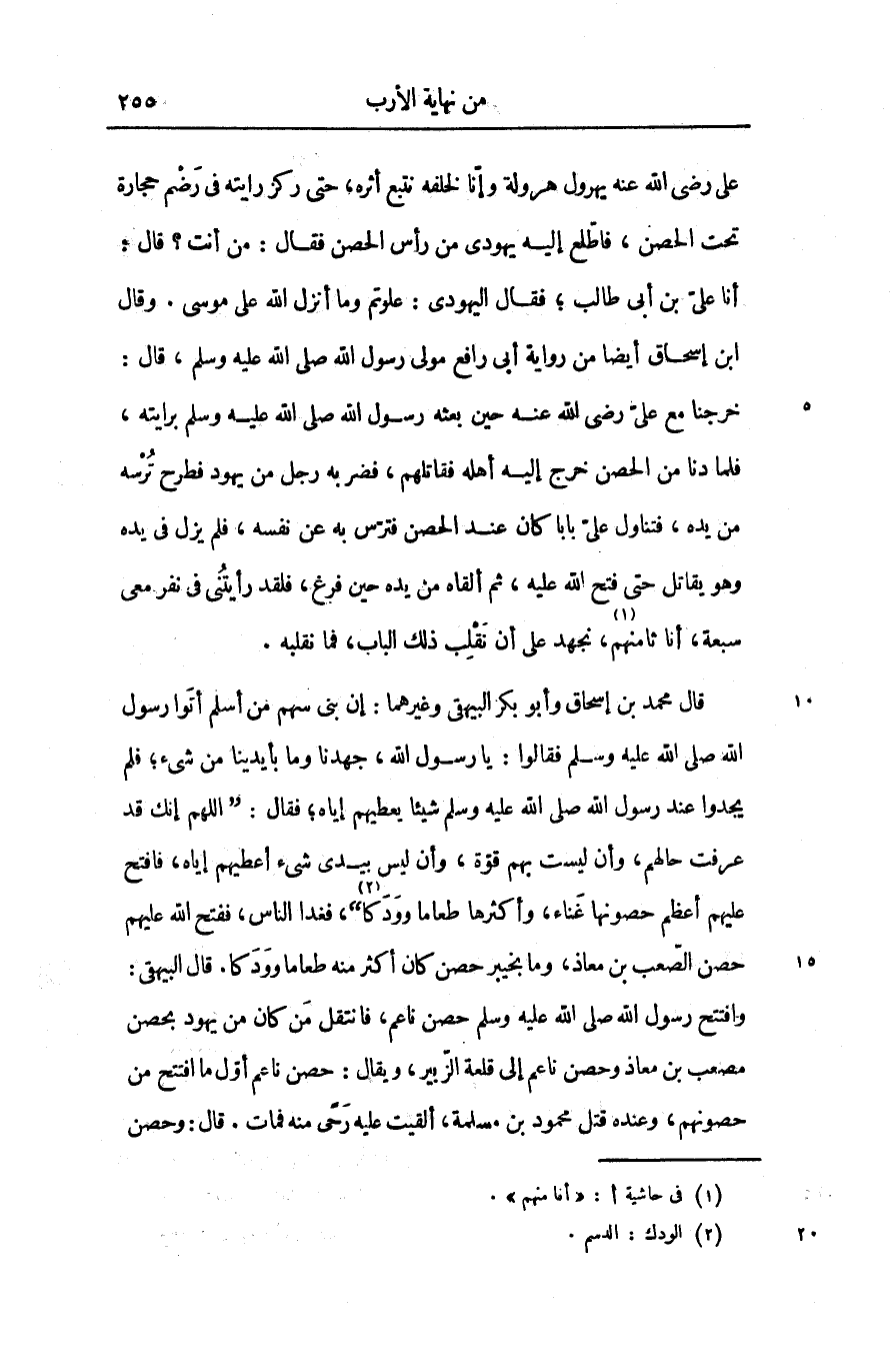على رضى الله عنه يهرول هرولة وإنّا لخلفه نتبع أثره، حتى ركز رأيته فى رضم حجارة تحت الحصن، فاطّلع إليه يهودى من رأس الحصن فقال: من أنت؟ قال: