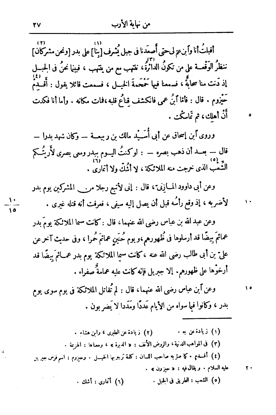 وعن ابن عباس رضى الله عنهما، قال: لم تقاتل الملائكة فى يوم سوى يوم بدر، وكانوا فيما سواه من الأيام عددا ومددا لا يضربون.