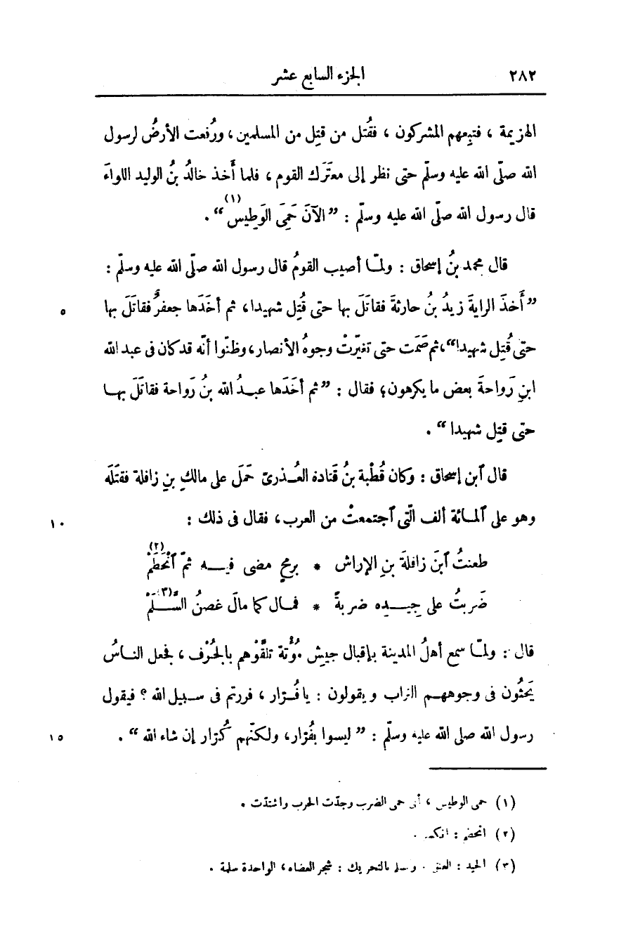قال محمد بن إسحاق: ولمّا أصيب القوم قال رسول الله صلّى الله عليه وسلّم: