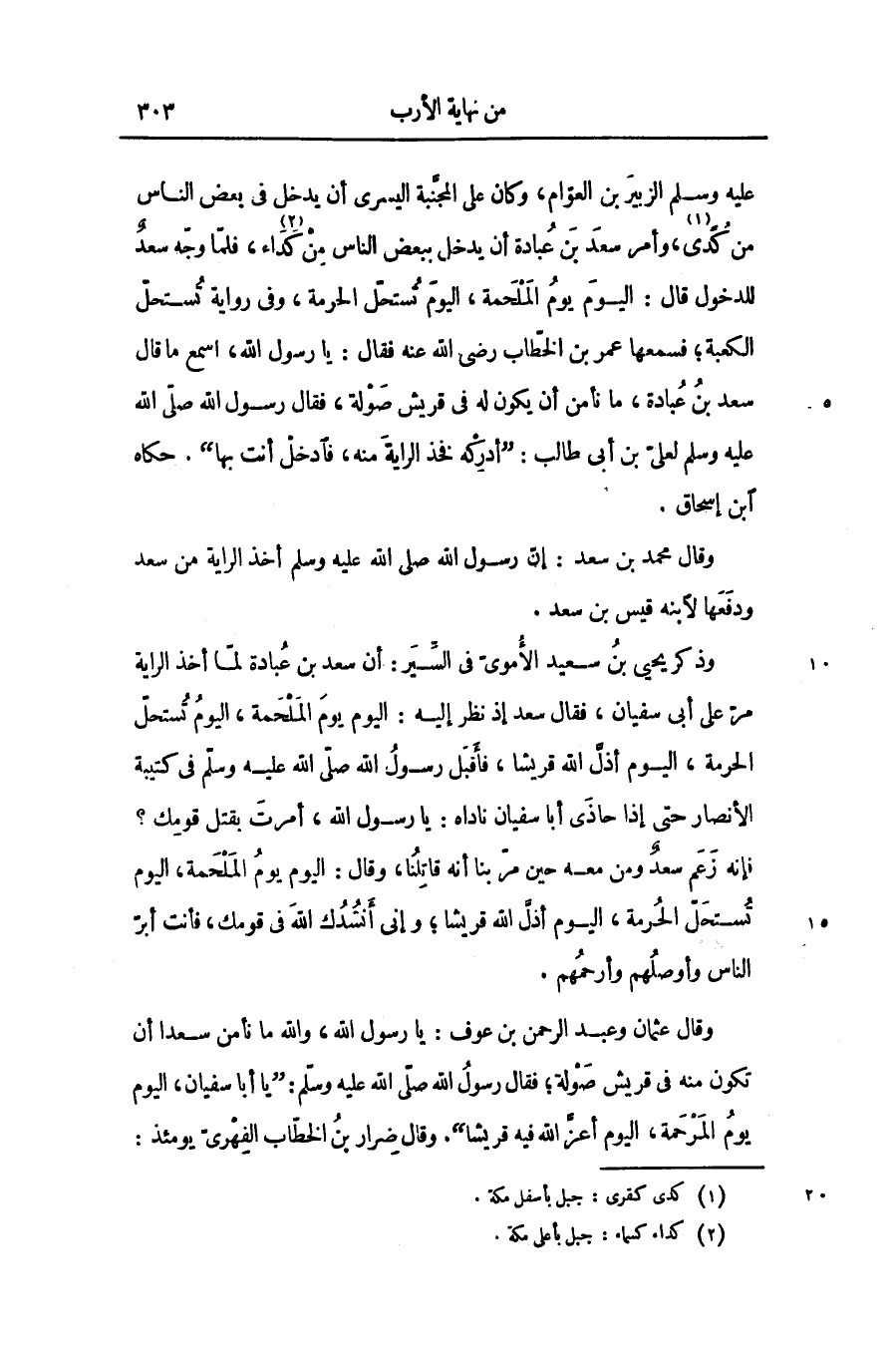 فإنه زعم سعد ومن معه حين مرّ بنا أنه قاتلنا، وقال: اليوم يوم الملحمة، اليوم تستحلّ الحرمة، اليوم أذلّ الله قريشا؛ وإنى أنشدك الله فى قومك، فأنت أبرّ الناس وأوصلهم وأرحمهم.