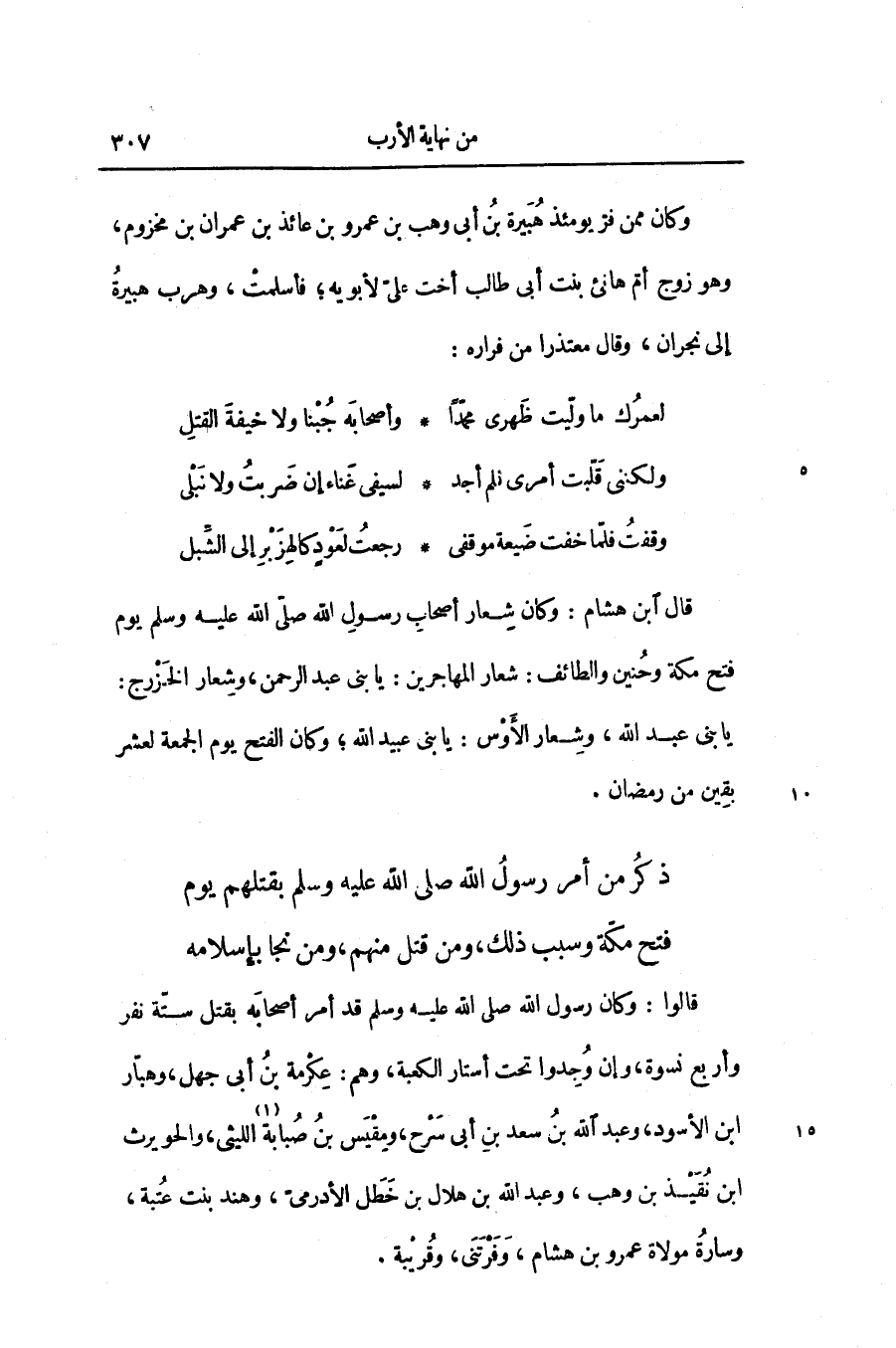 وكان ممن فرّ يومئذ هبيرة بن أبى وهب بن عمرو بن عائذ بن عمران بن مخزوم، وهو زوج أمّ هانئ بنت أبى طالب أخت علىّ لأبويه؛ فأسلمت، وهرب هبيرة إلى نجران، وقال معتذرا من فراره: