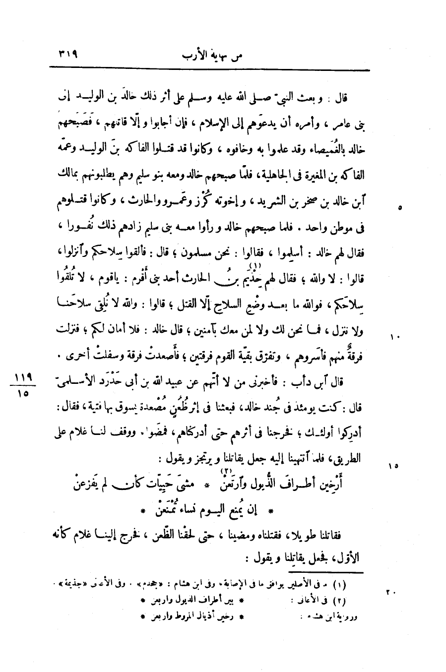 قال ابن دأب: فأخبرنى من لا أتّهم عن عبيد الله بن أبى حدود الأسلمىّ قال: كنت يومئذ فى جند خالد، فبعثنا فى إثر ظعن مصعدة يسوق بها فتية، فقال: