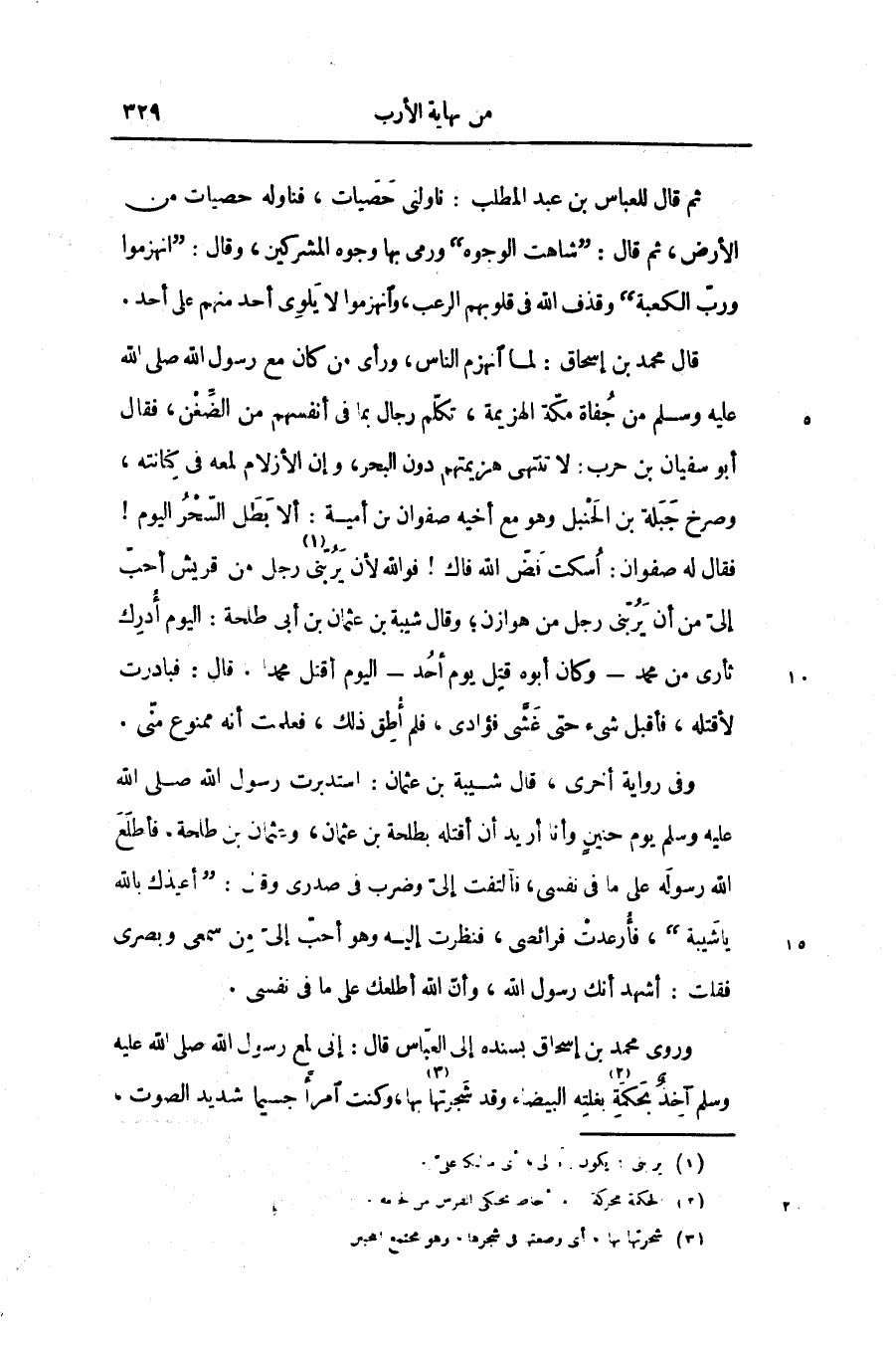وروى محمد بن إسحاق بسنده إلى العبّاس قال: إنى لمع رسول الله صلّى الله عليه وسلّم آخذ بحكمة «2» بغلته البيضاء وقد شجرتها «3» بها، وكنت امرأ جسيما شديد الصوت،