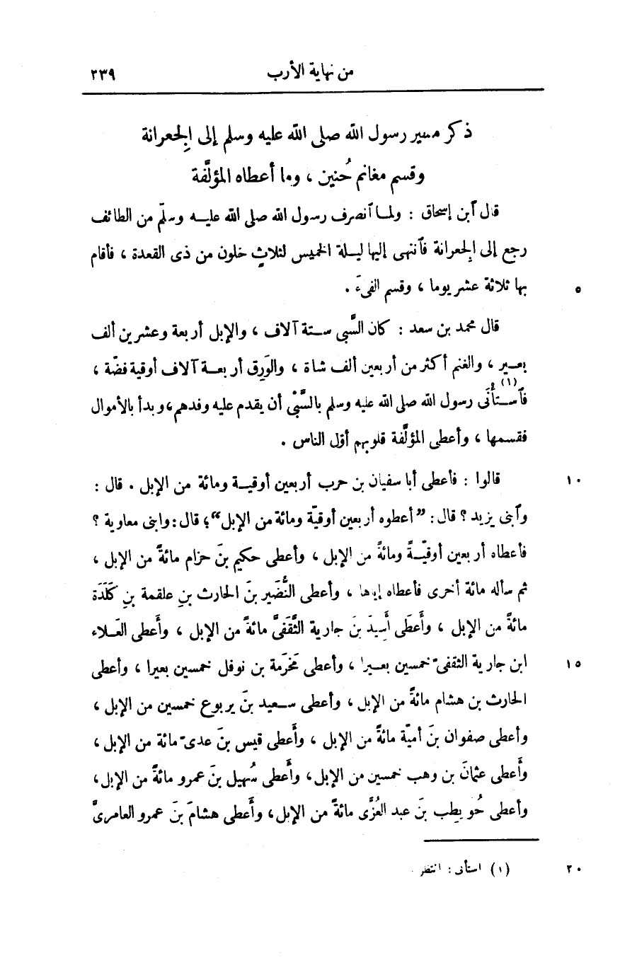 ذكر مسير رسول الله صلّى الله عليه وسلّم إلى الجعرانة وقسم مغانم حنين، وما أعطاه المؤلّفة