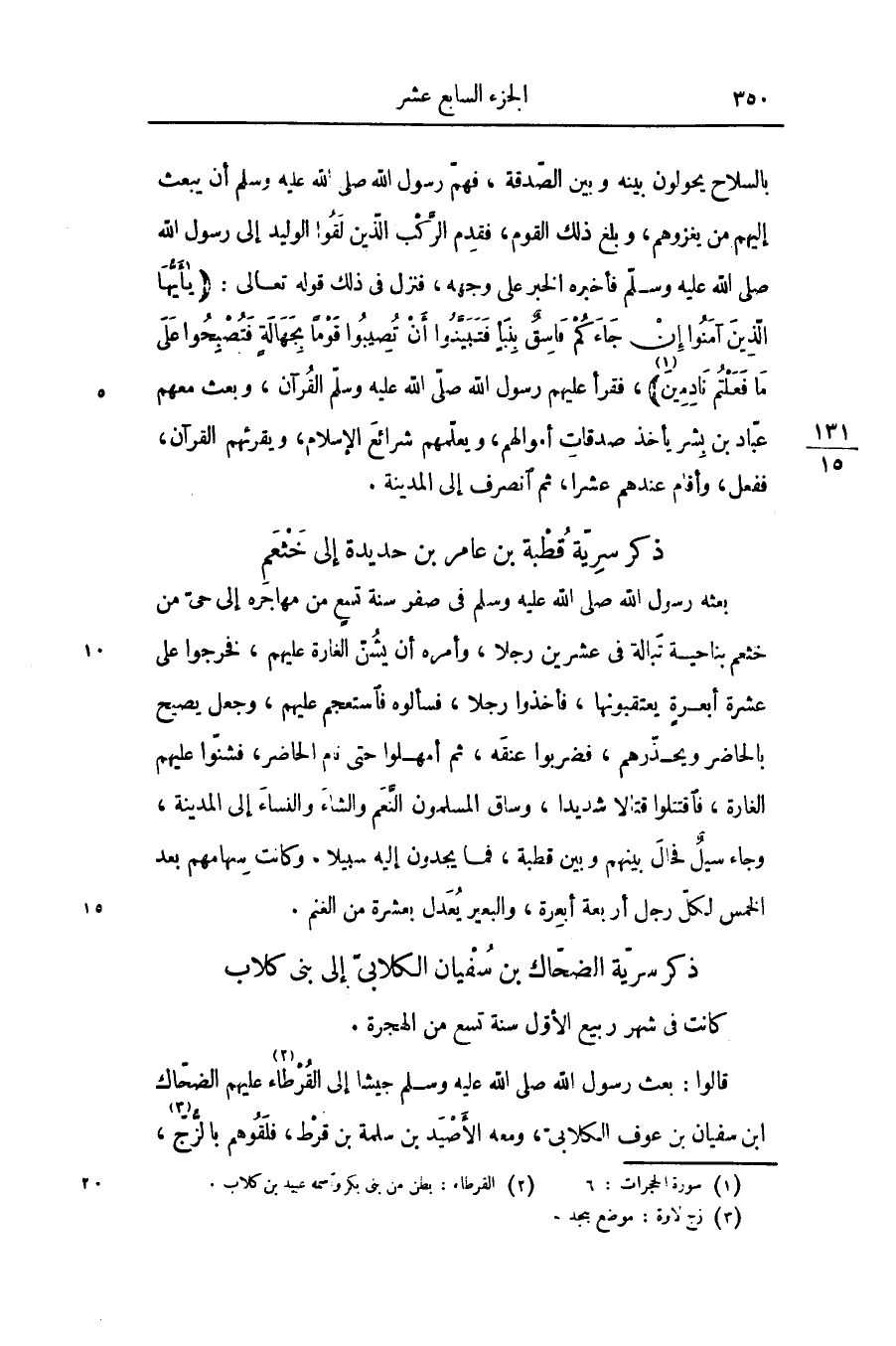 ذكر سريّة الضحّاك بن سفيان الكلابىّ إلى بنى كلاب كانت فى شهر ربيع الأوّل سنة تسع من الهجرة