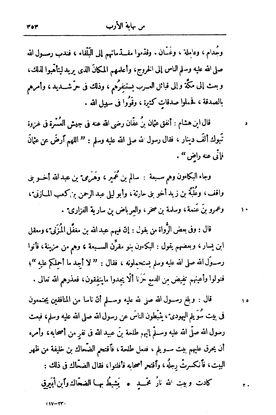 قال ابن هشام: أنفق عثمان بن عفّان رضى الله عنه فى جيش العسرة فى غزوة تبوك ألف دينار، فقال رسول الله صلّى الله عليه وسلّم: «اللهم ارض عن عثمان فإنّى عنه راض» .