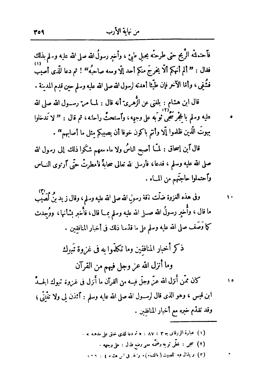 وفى هذه الغزوة ضلّت ناقة رسول الله صلّى الله عليه وسلّم، وقال زيد بن لصيب «3» ما قال، وأخبر رسول الله صلّى الله عليه وسلّم بما قال، فأخبر بشأنها، ووجدت كما وصف صلّى الله عليه وسلّم على ما قدّمنا ذلك فى أخبار المنافقين.