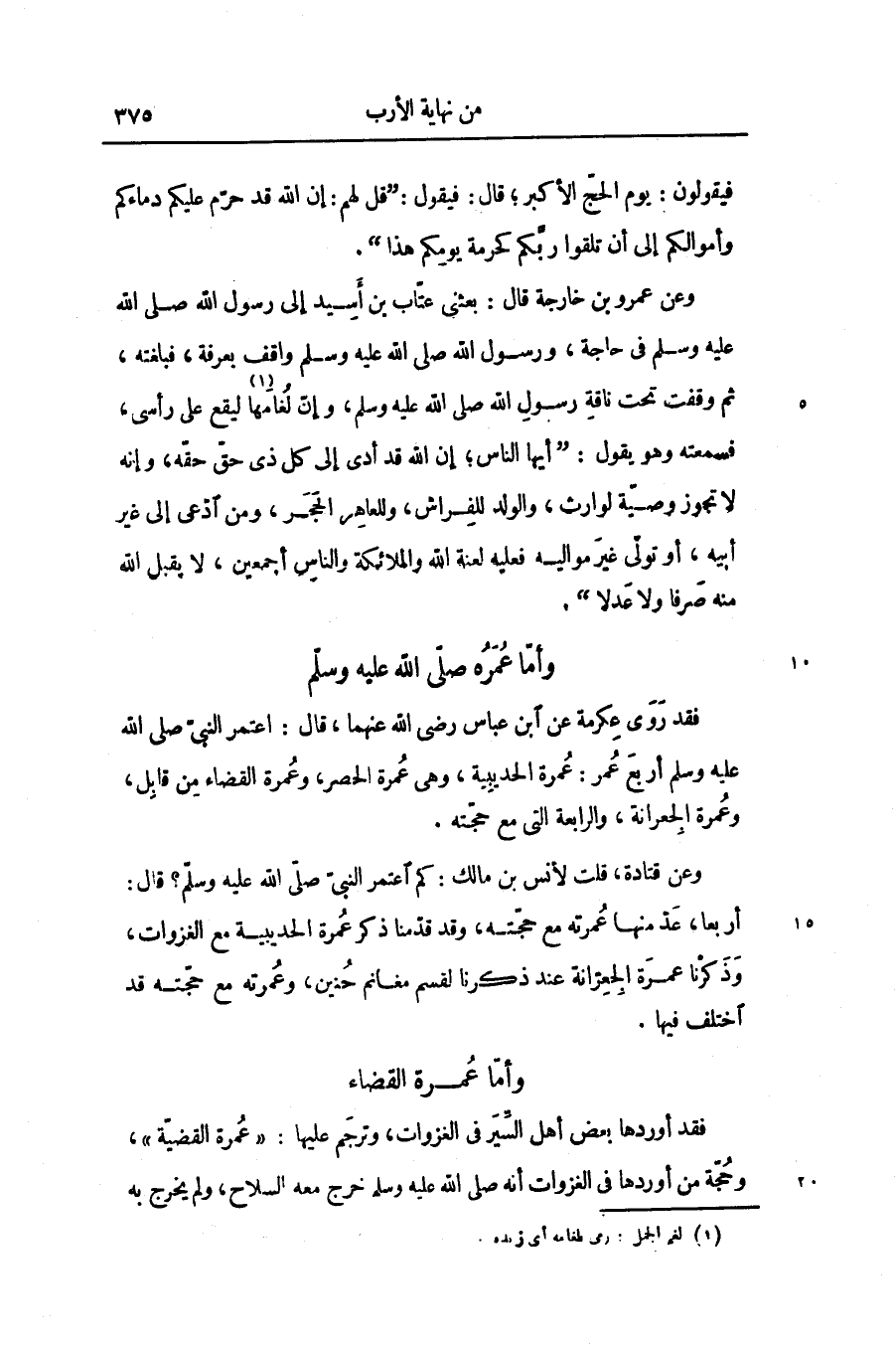 وعن قتادة: قلت لأنس بن مالك: كم اعتمر النبىّ صلّى الله عليه وسلّم؟ قال: