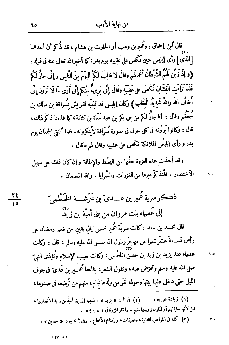 قال ابن إسحاق: وعمير بن وهب أو الحارث بن هشام، قد ذكر أن أحدهما [الذى «1» ] رأى إبليس حين نكص على عقبيه يوم بدر، كما أخبر الله تعالى عنه فى قوله: