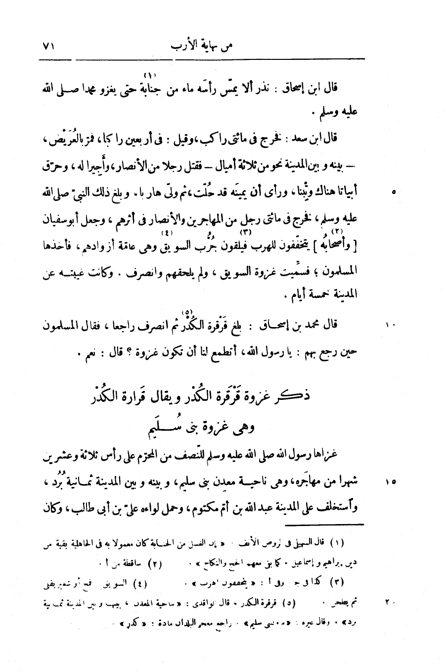 قال محمد بن إسحاق: بلغ قرقرة الكدر «5» ثم انصرف راجعا، فقال المسلمون حين رجع بهم: يا رسول الله، أتطمع لنا أن تكون غزوة؟ قال: نعم.