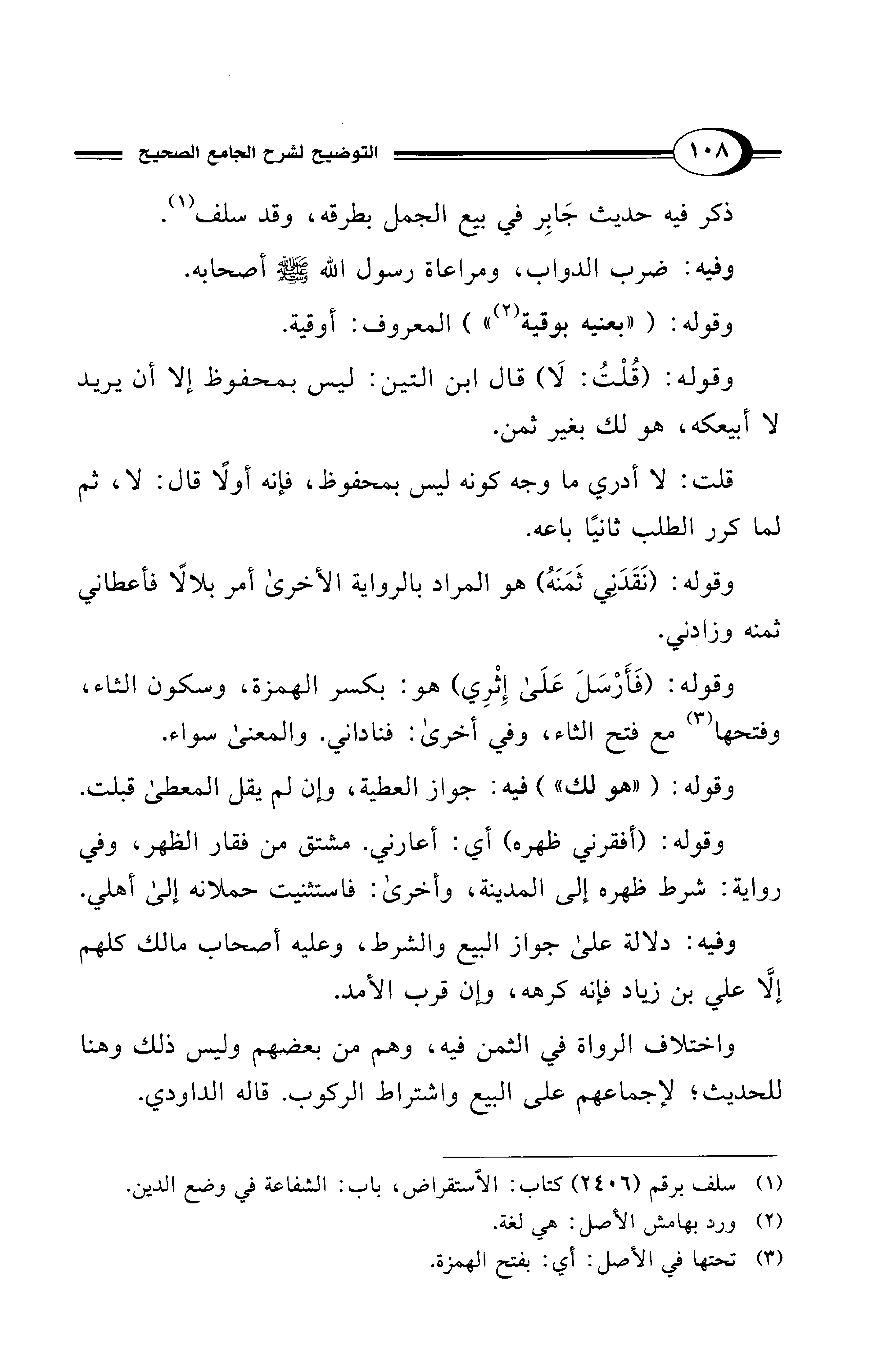 واختلاف الرواة في الثمن فيه، وهم من بعضهم وليس ذلك وهنا للحديث؛ لإجماعهم على البيع واشتراط الركوب. قاله الداودي.