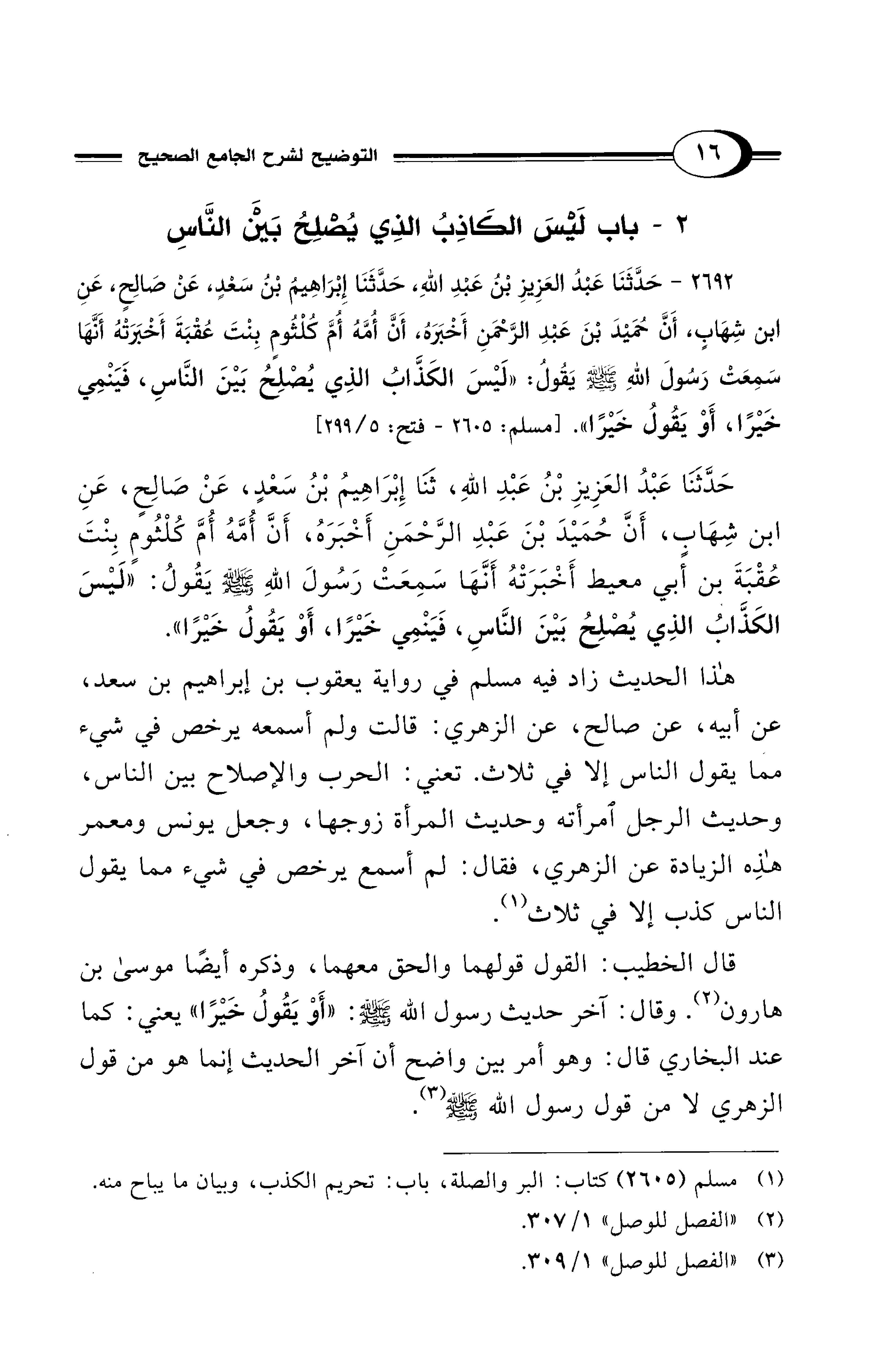 2 - باب لَيْسَ الكَاذِبُ الذِي يُصْلِحُ بَيْنَ النَّاسِ