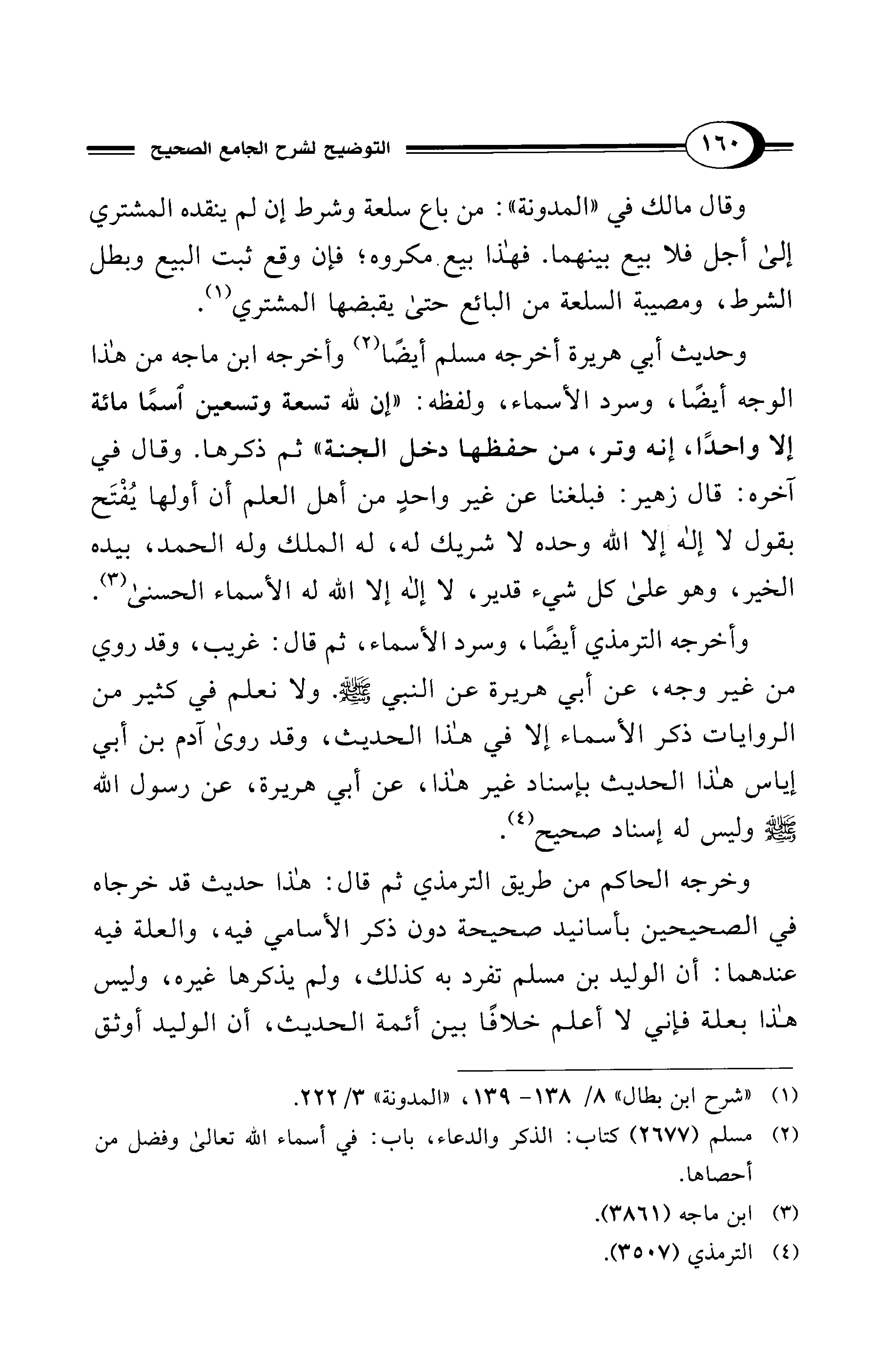 وخرجه الحاكم من طريق الترمذي ثم قال: هذا حديث قد خرجاه في الصحيحين بأسانيد صحيحة دون ذكر الأسامي فيه، والعلة فيه عندهما: أن الوليد بن مسلم تفرد به كذلك، ولم يذكرها غيره، وليس هذا بعلة فإني لا أعلم خلافًا بين أئمة الحديث، أن الوليد أوثق