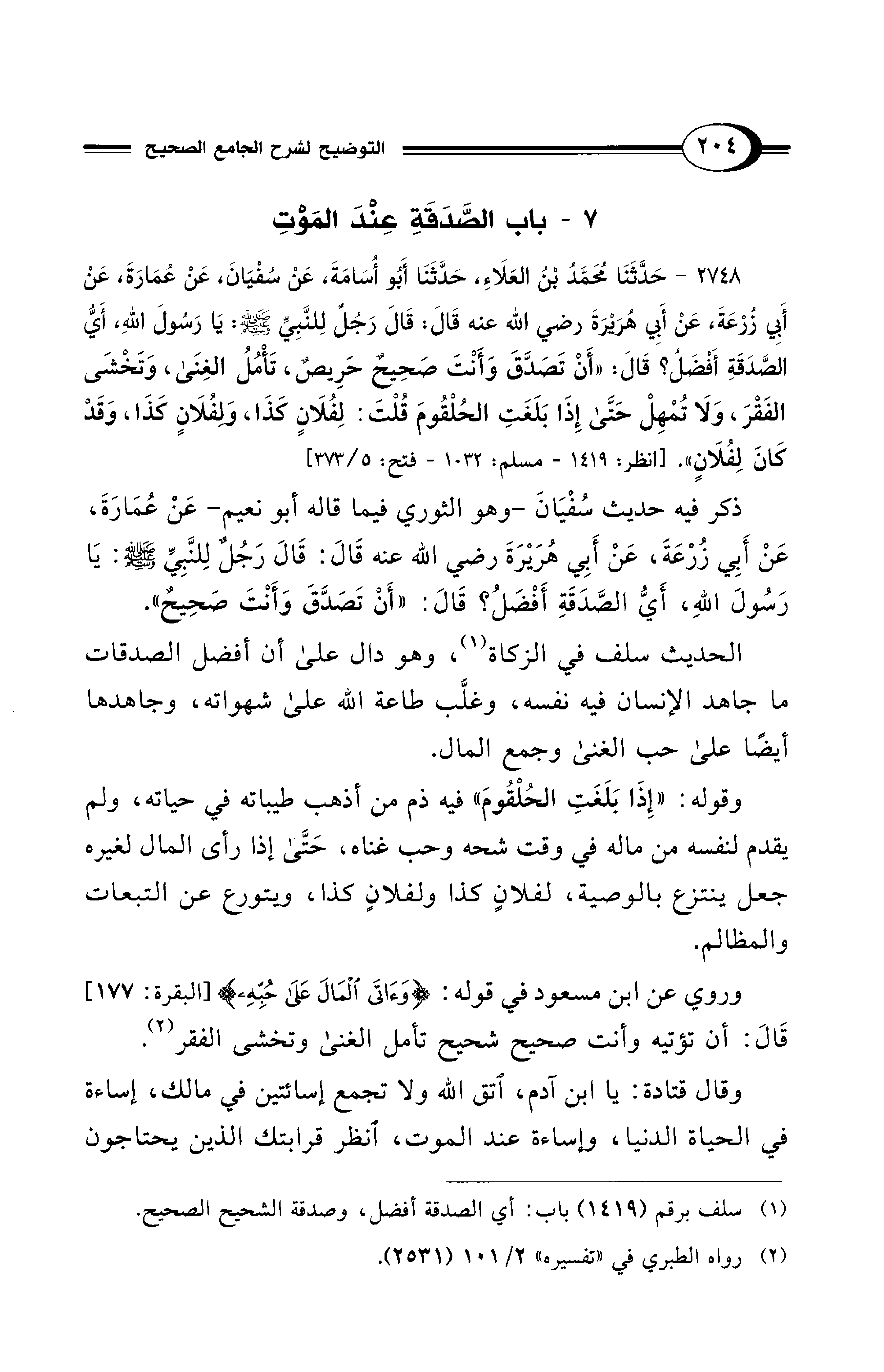 7 - باب الصَّدَقَةِ عِنْدَ المَوْتِ