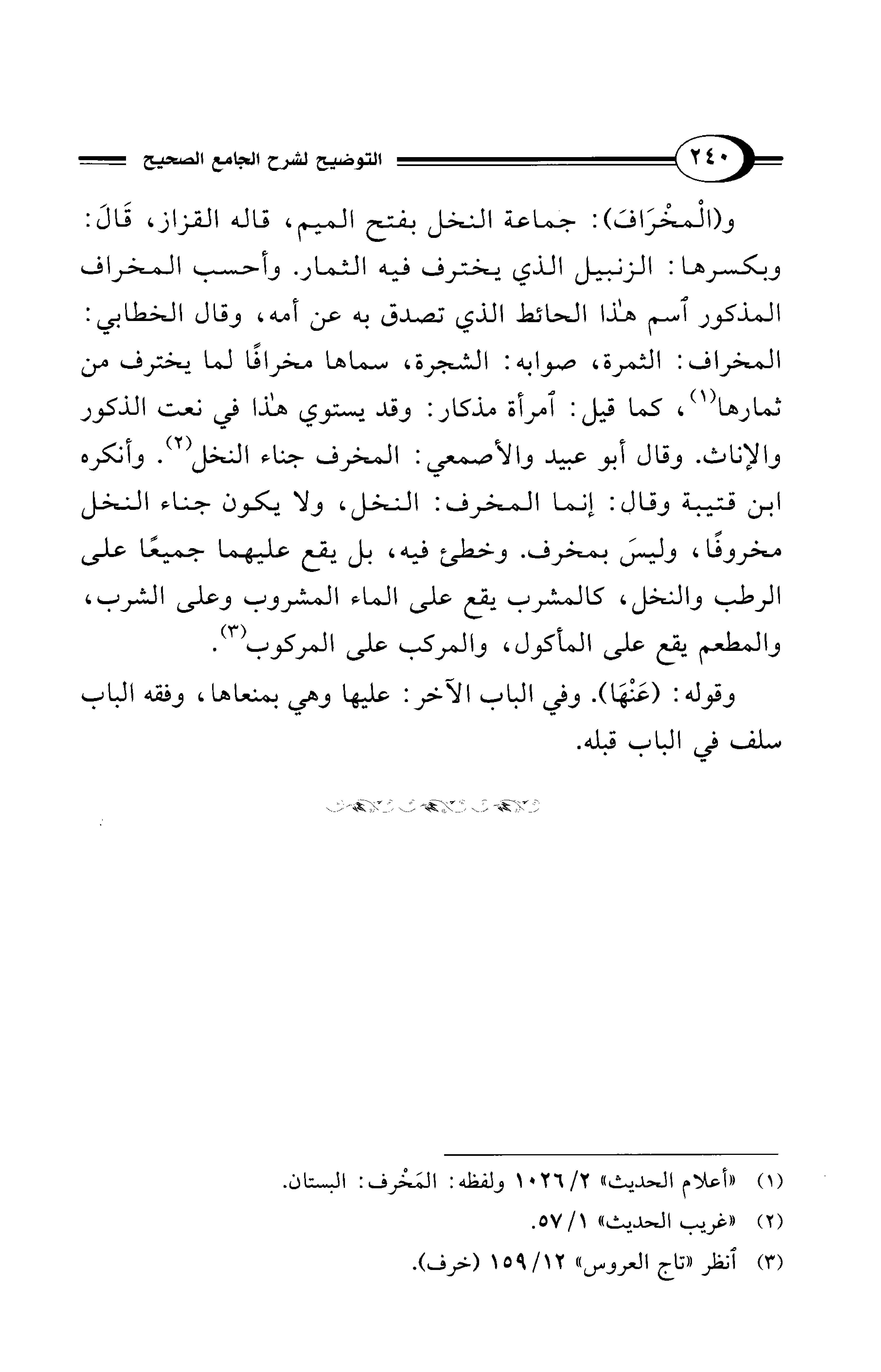 (¬1) "أعلام الحديث" 2/ 1026 ولفظه: المَخْرف: البستان.