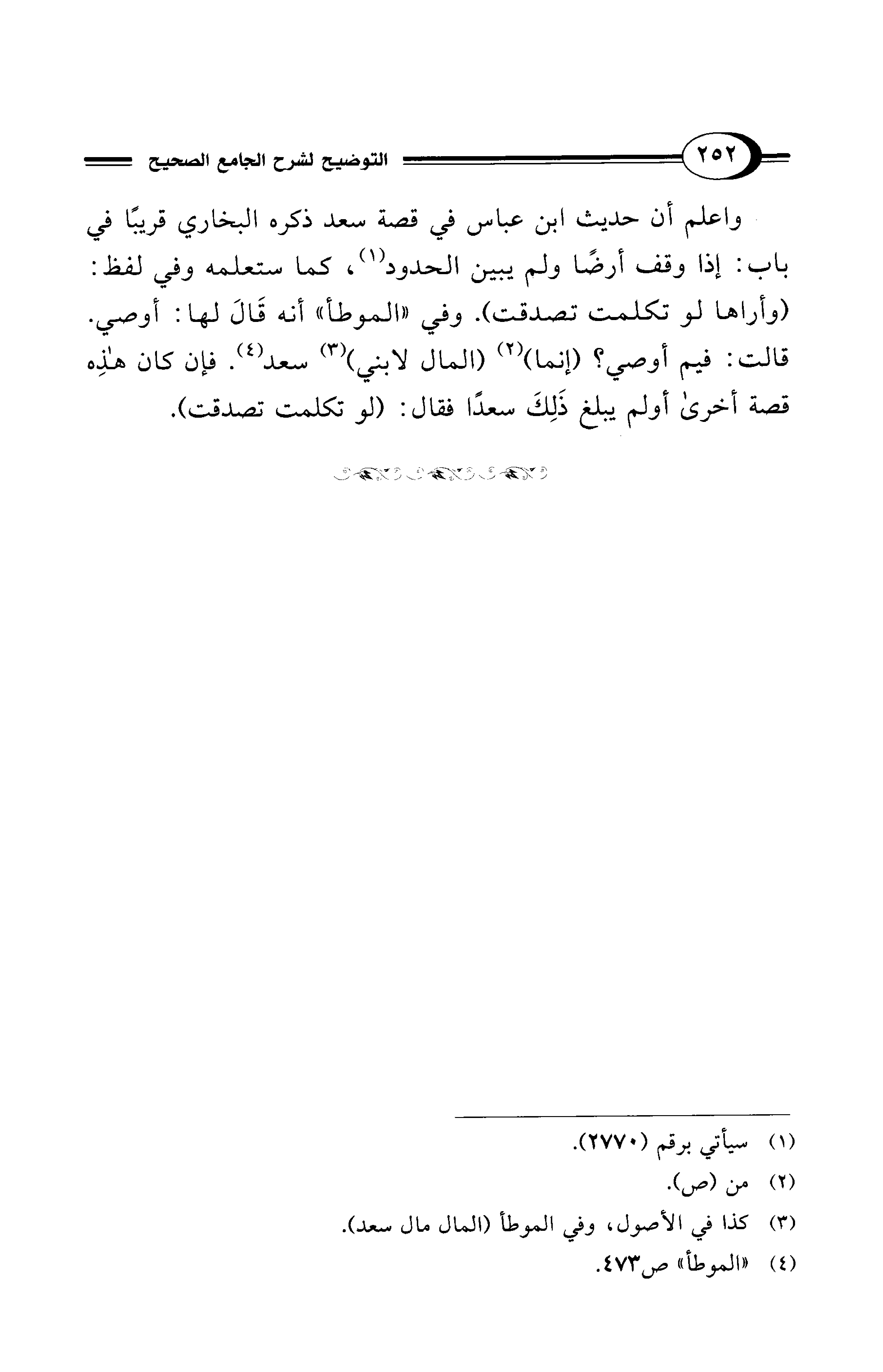 (¬3) كذا في الأصول، وفي الموطأ (المال مال سعد).