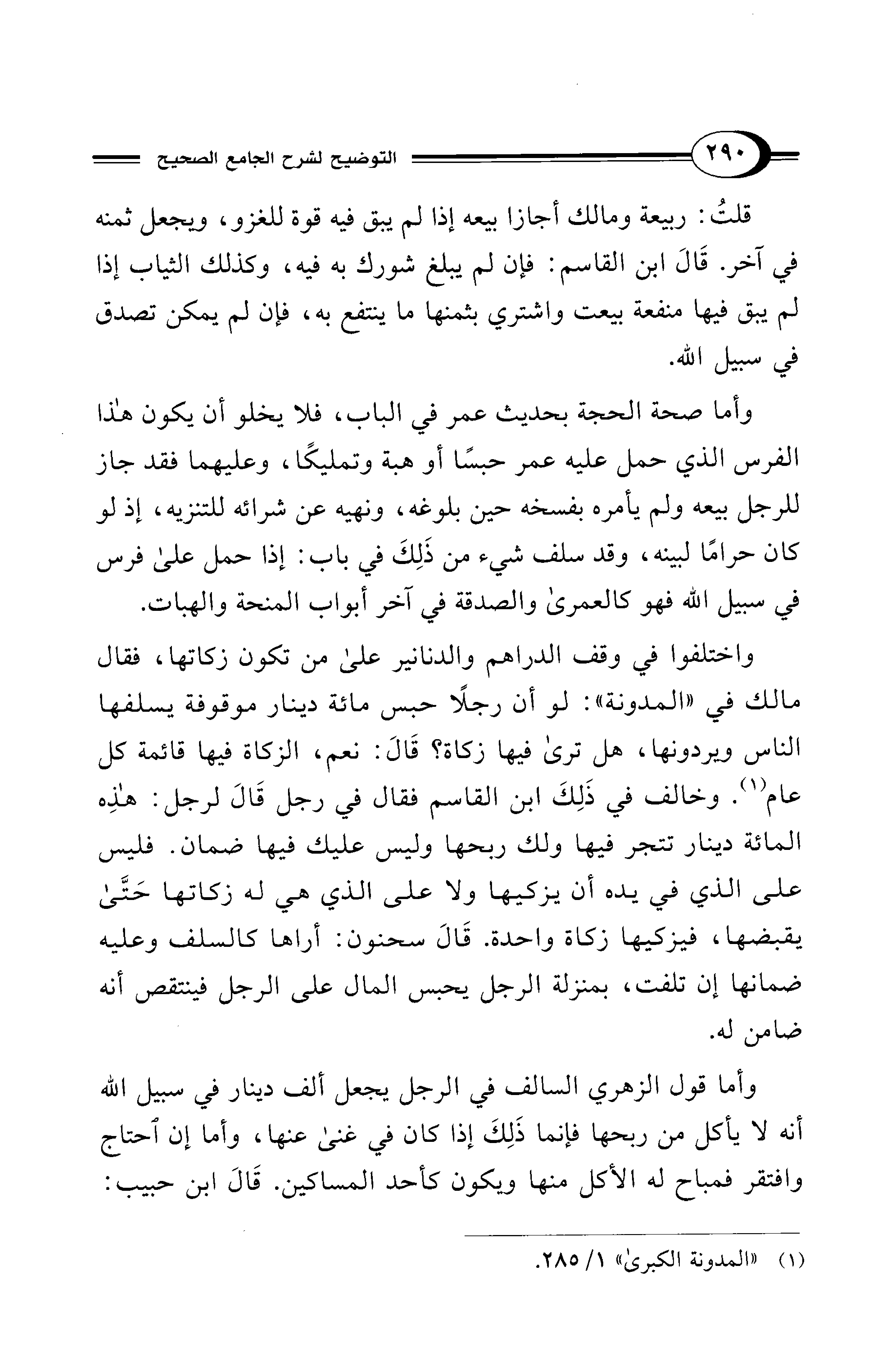 (¬1) "المدونة الكبرى" 1/ 285.
