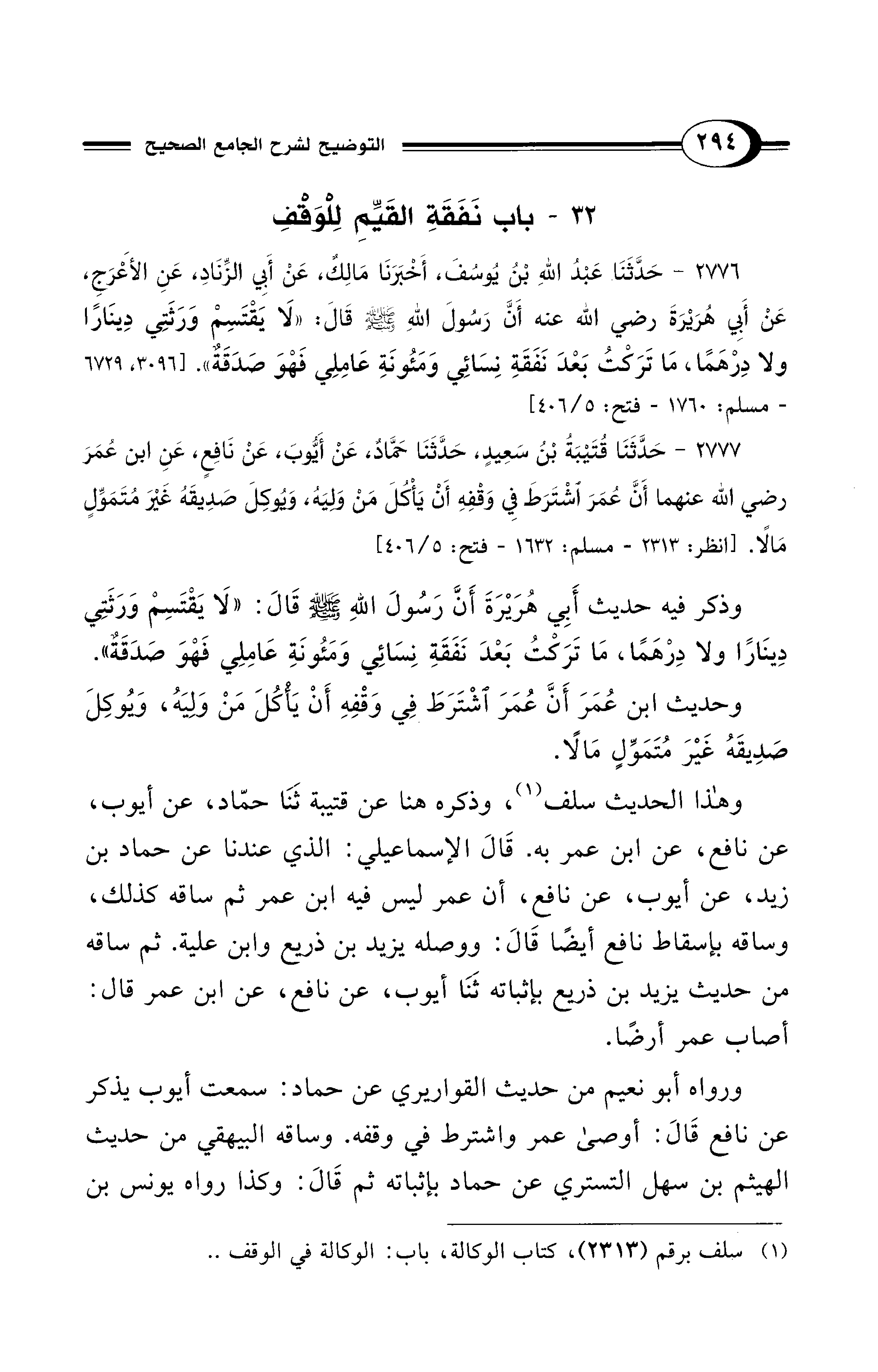(¬1) سلف برقم (2313)، كتاب الوكالة، باب: الوكالة في الوقف ..