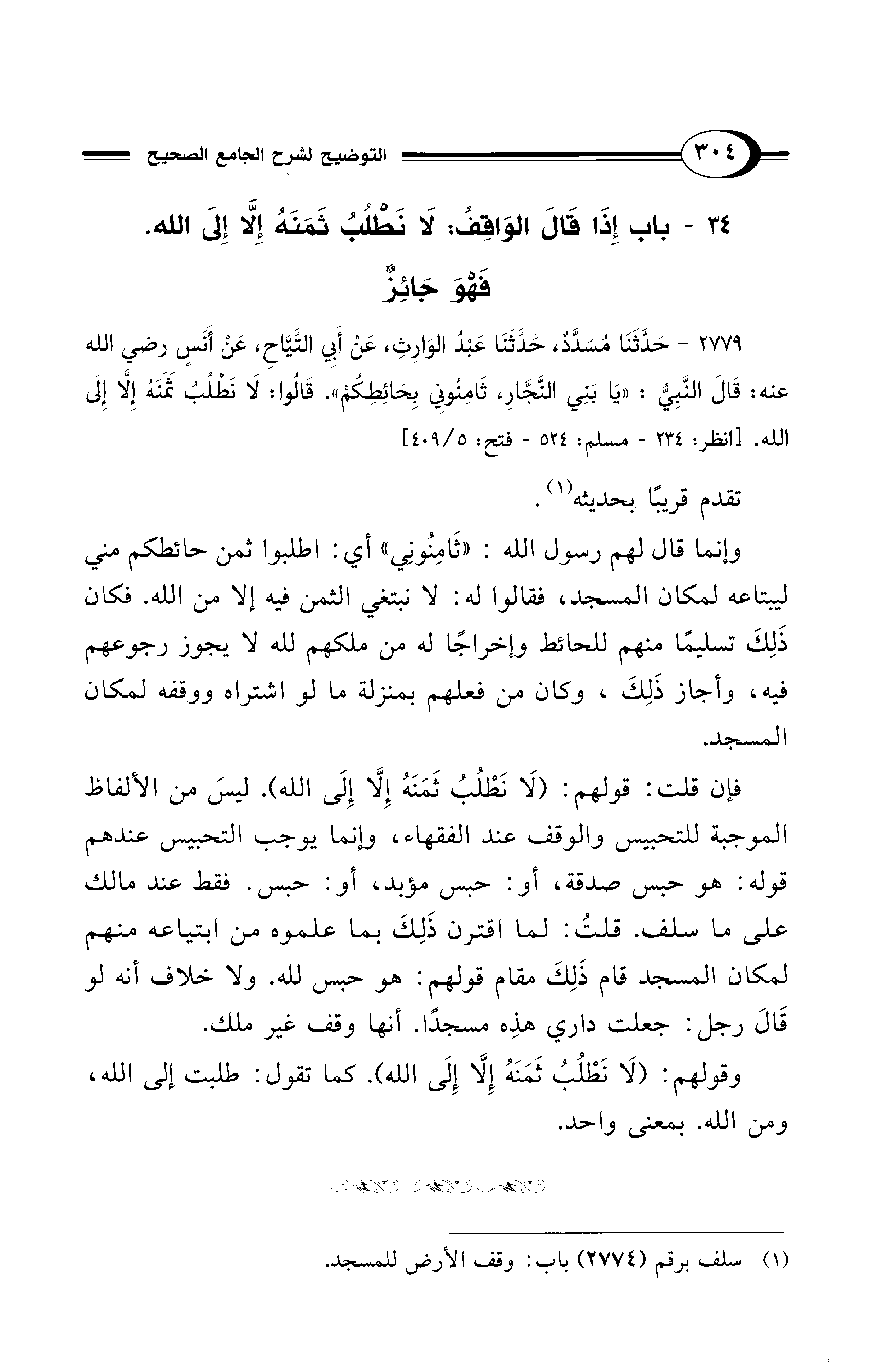(¬1) سلف برقم (2774) باب: وقف الأرض للمسجد.