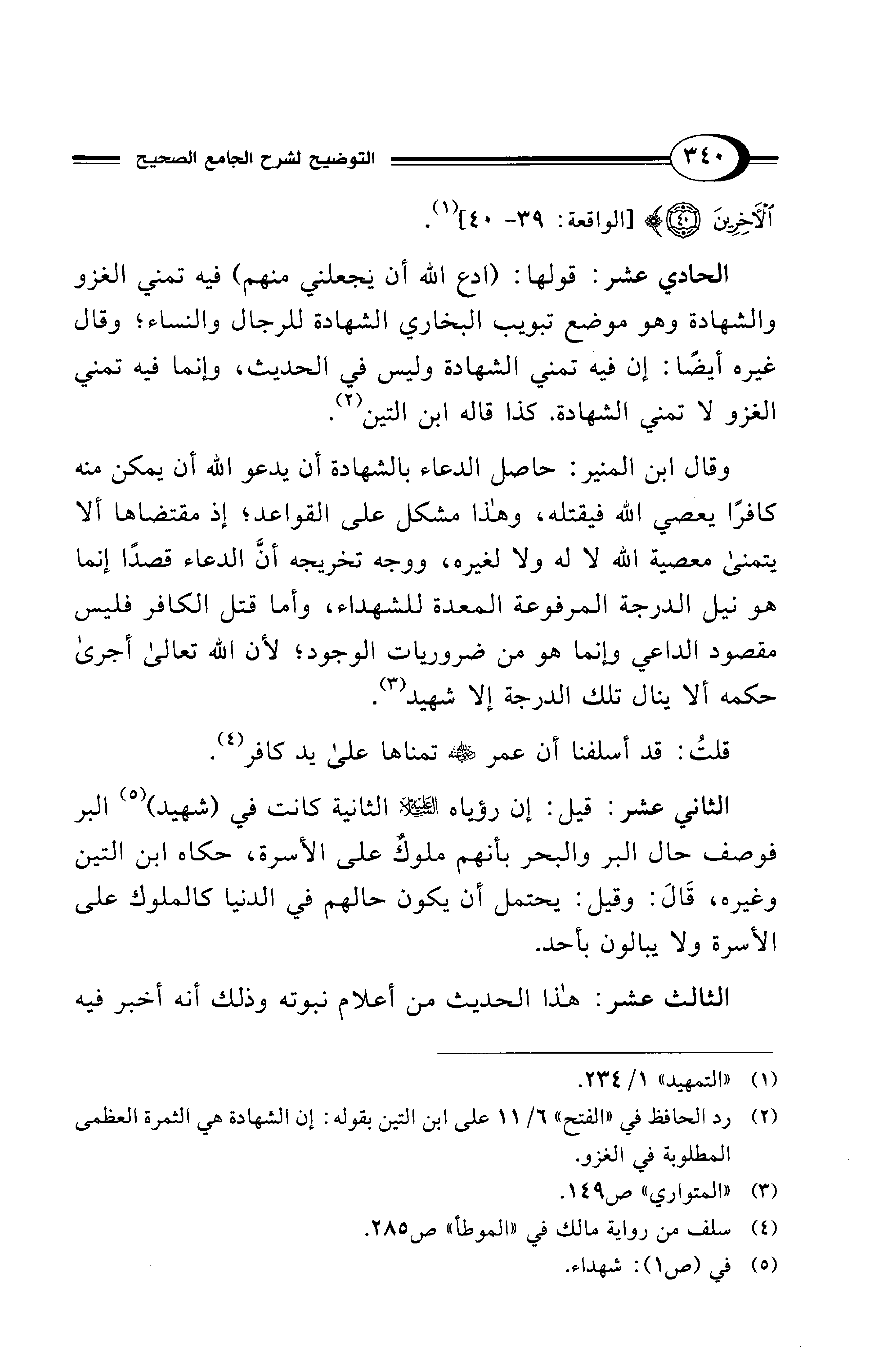 (¬2) رد الحافظ في "الفتح" 6/ 11 على ابن التين بقوله: إن الشهادة هي الثمرة العظمى المطلوبة في الغزو.