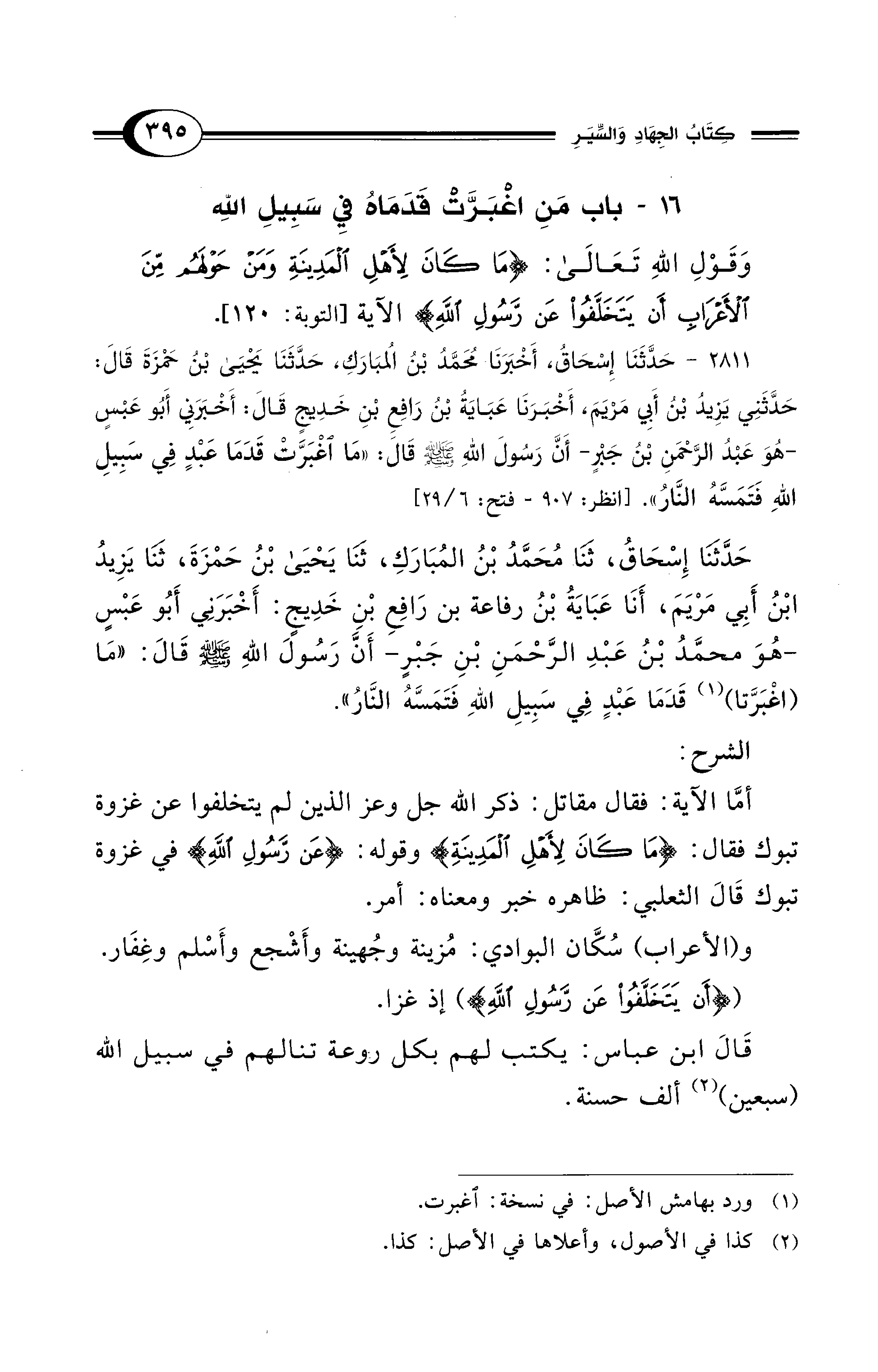 16 - باب مَنِ اغْبَرَّتْ قَدَمَاهُ فِي سَبِيلِ اللهِ