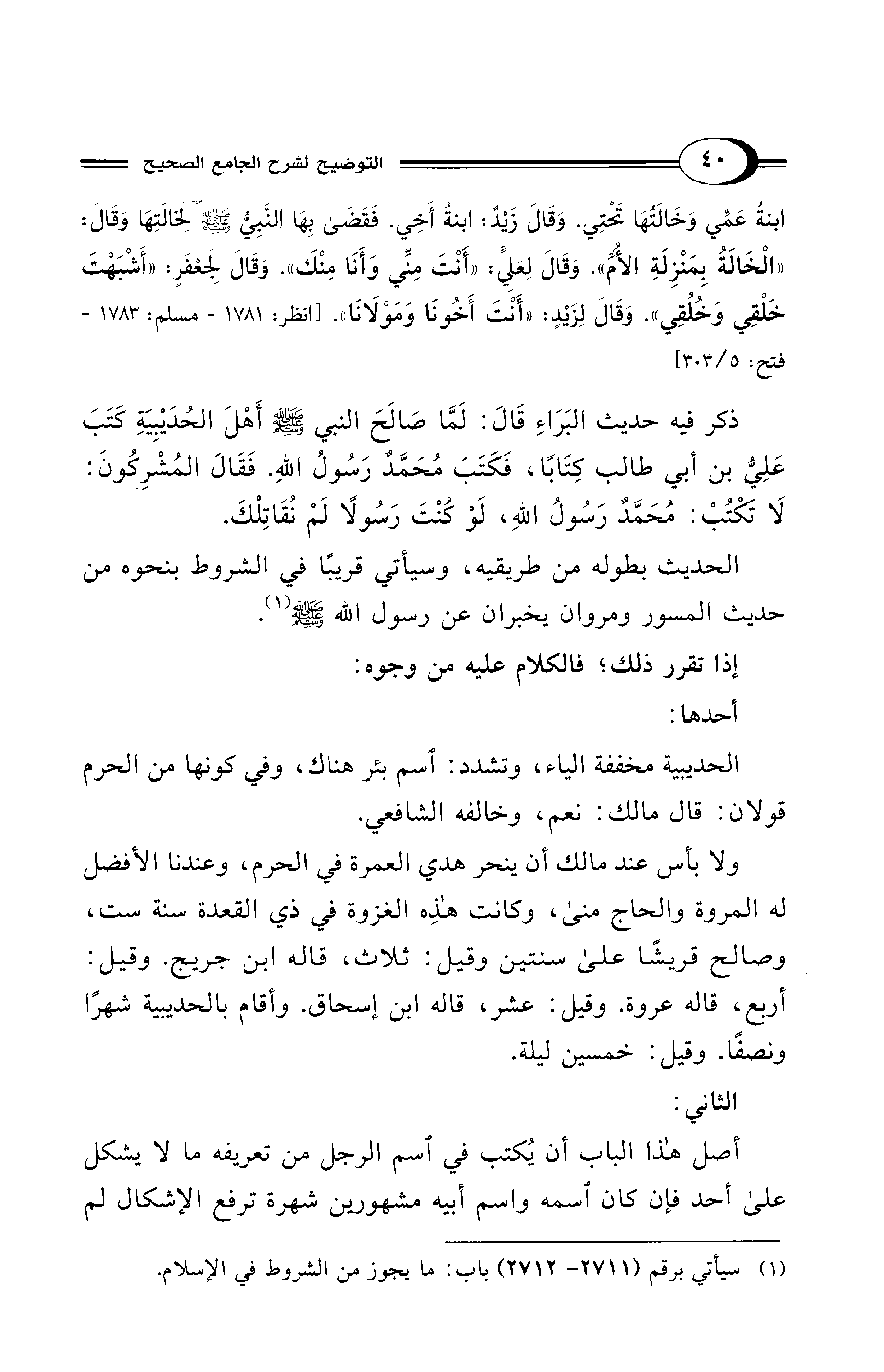 (¬1) سيأتي برقم (2711 - 2712) باب: ما يجوز من الشروط في الإسلام.