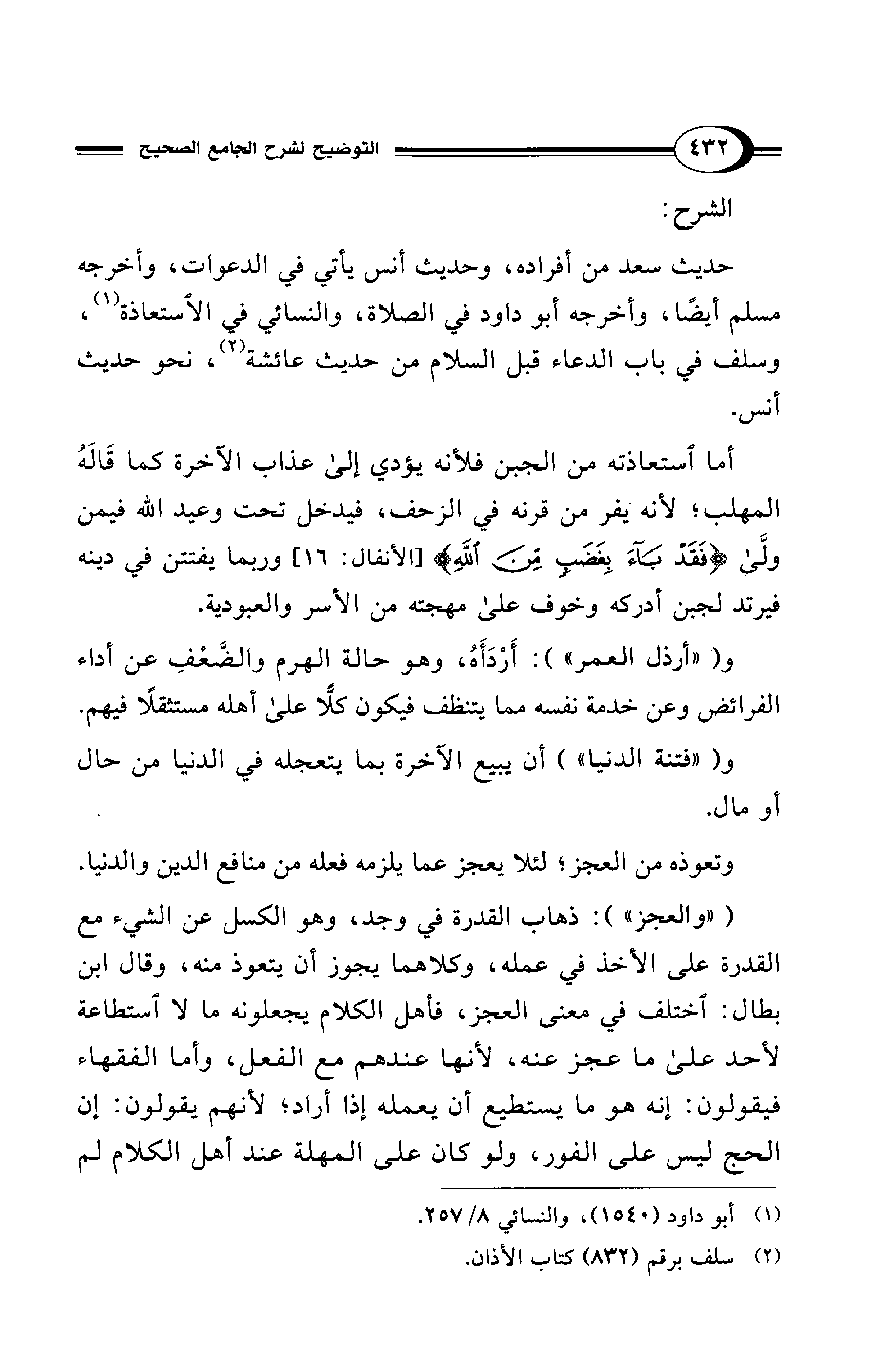 حديث سعد من أفراده، وحديث أنس يأتي في الدعوات، وأخرجه مسلم أيضًا، وأخرجه أبو داود في الصلاة، والنسائي في الاستعاذة (¬1)، وسلف في باب الدعاء قبل السلام من حديث عائشة (¬2)، نحو حديث أنس.