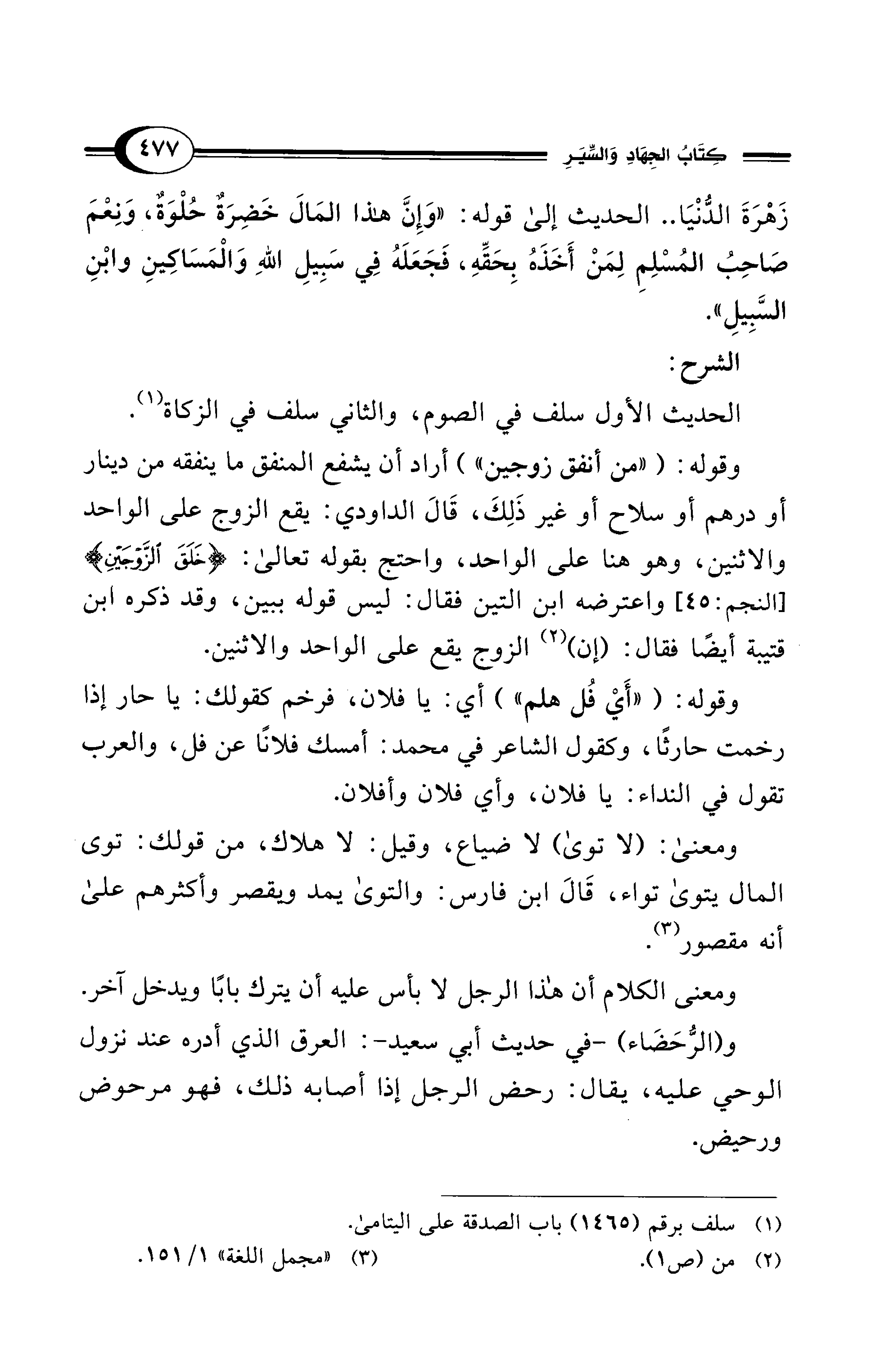 زَهْرَةَ الدُّنْيَا .. الحديث إلى قوله: "وَإِنَّ هذا المَالَ خَضِرَةٌ حُلْوَةٌ، وَنِعْمَ صَاحِبُ المُسْلِمِ لِمَنْ أَخَذَهُ بِحَقِّهِ، فَجَعَلَهُ فِي سَبِيلِ اللهِ وَالمَسَاكينِ وابْنِ السَّبِيلِ".
