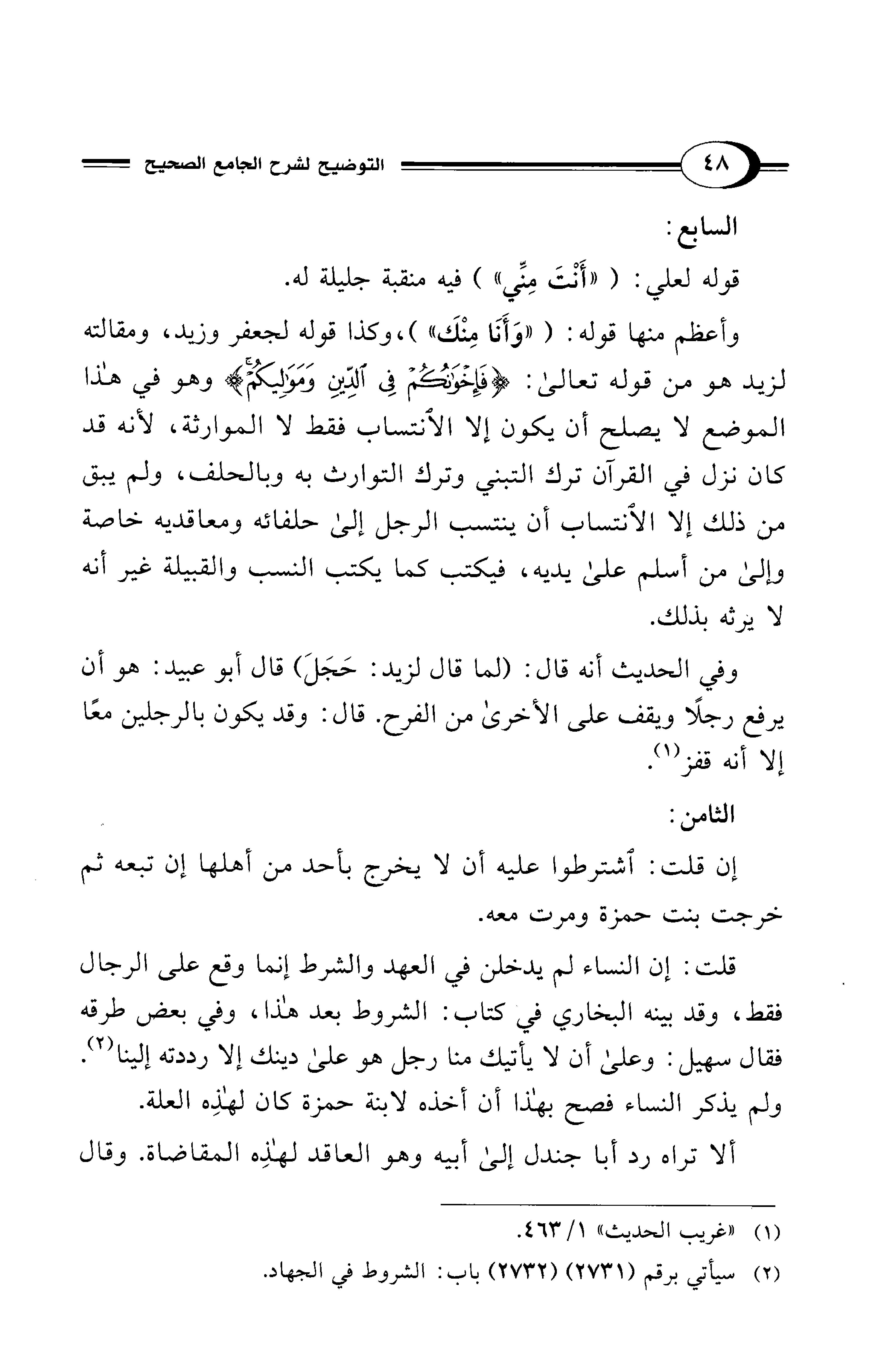 وأعظم منها قوله: ("وَأَنَا مِنْكَ")، وكذا قوله لجعفر وزيد، ومقالته