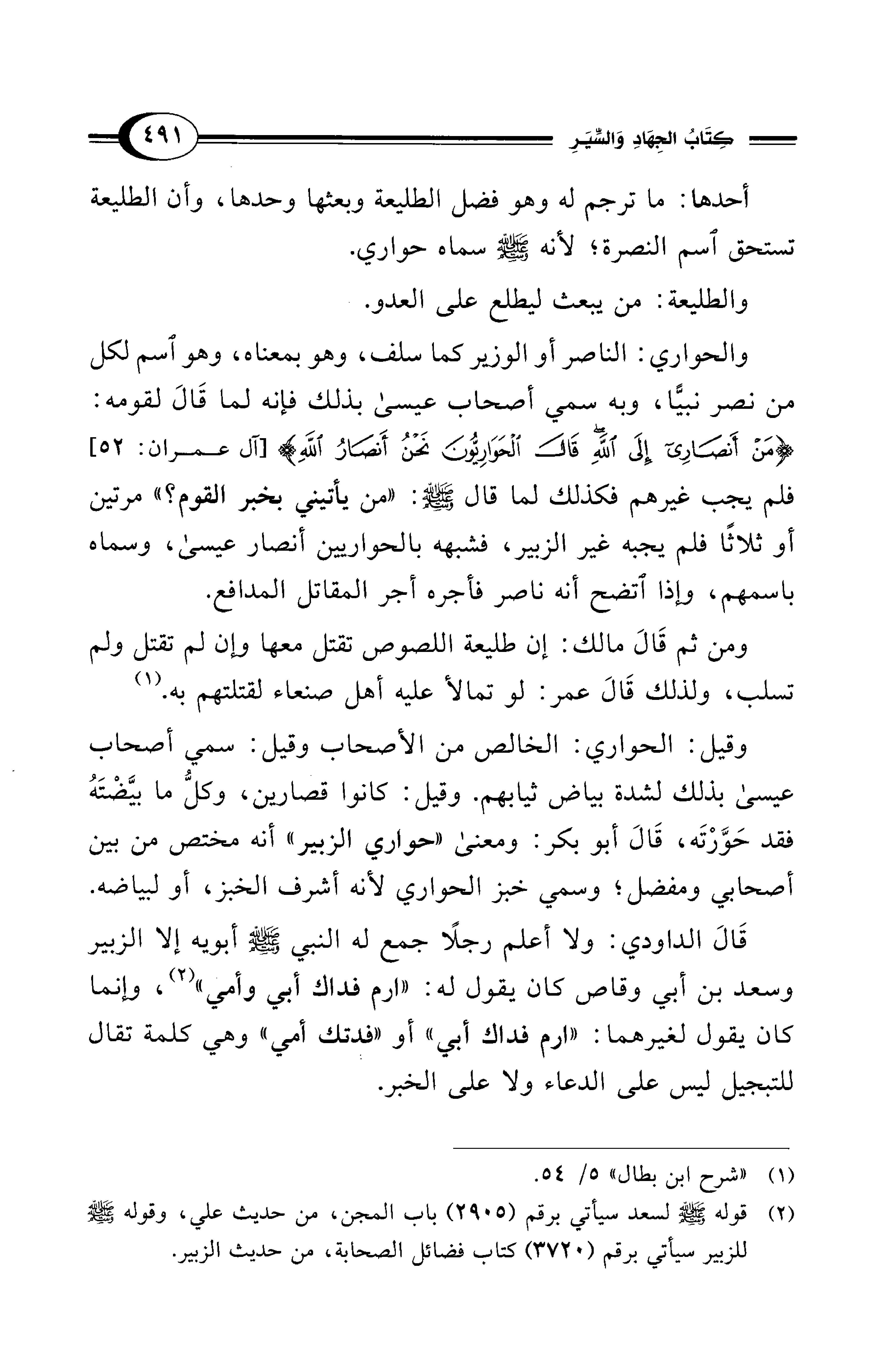 (¬2) قوله - صلي الله عليه وسلم - لسعد سيأتي برقم (2905) باب المجن، من حديث علي، وقوله - صلى الله عليه وسلم - للزبير سيأتي برقم (3720) كتاب فضائل الصحابة من حديث الزبير.