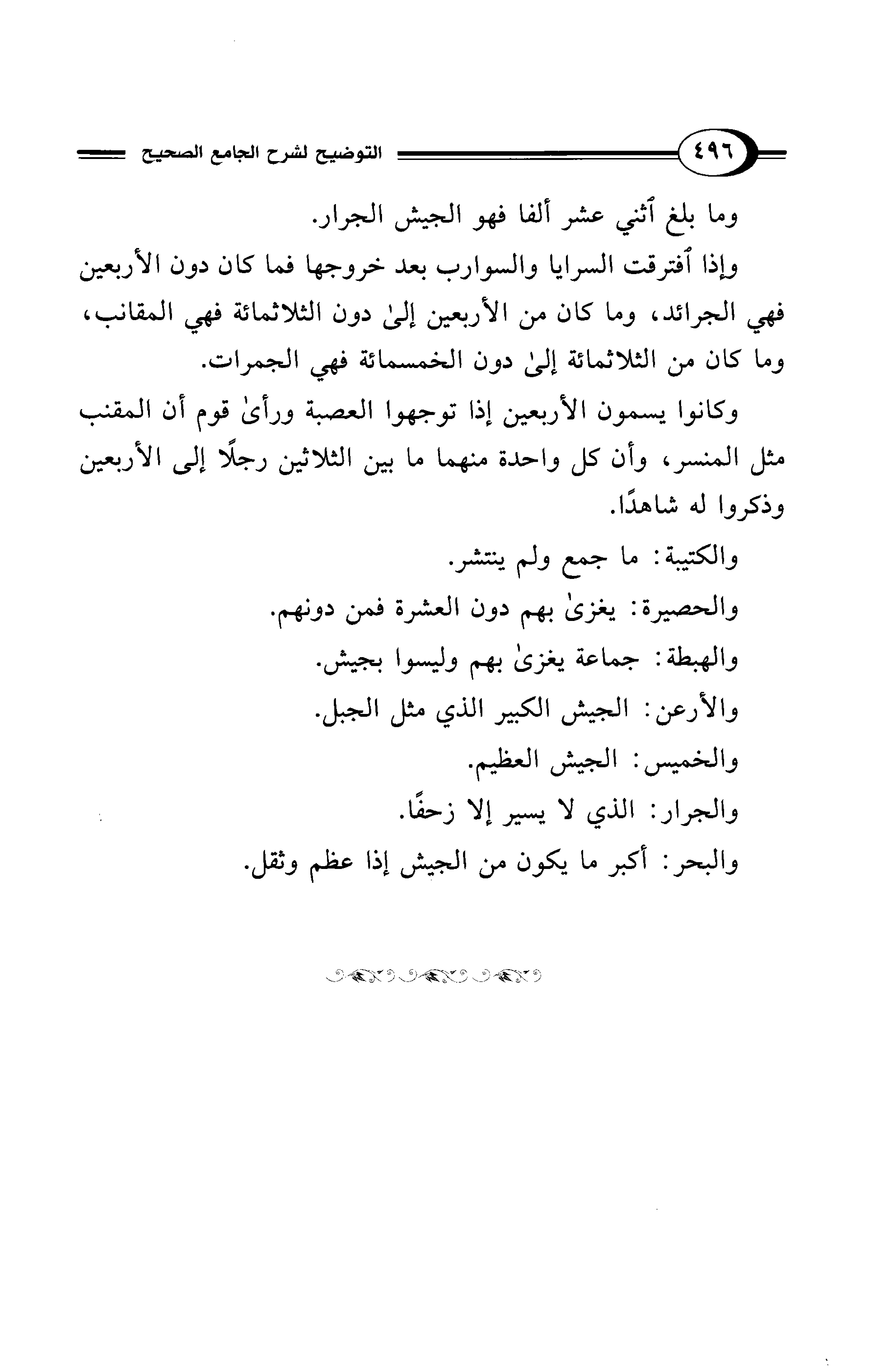 وإذا افترقت السرايا والسوارب بعد خروجها فما كان دون الأربعين فهي الجرائد، وما كان من الأربعين إلى دون الثلاثمائة فهي المقانب، وما كان من الثلاثمائة إلى دون الخمسمائة فهي الجمرات.