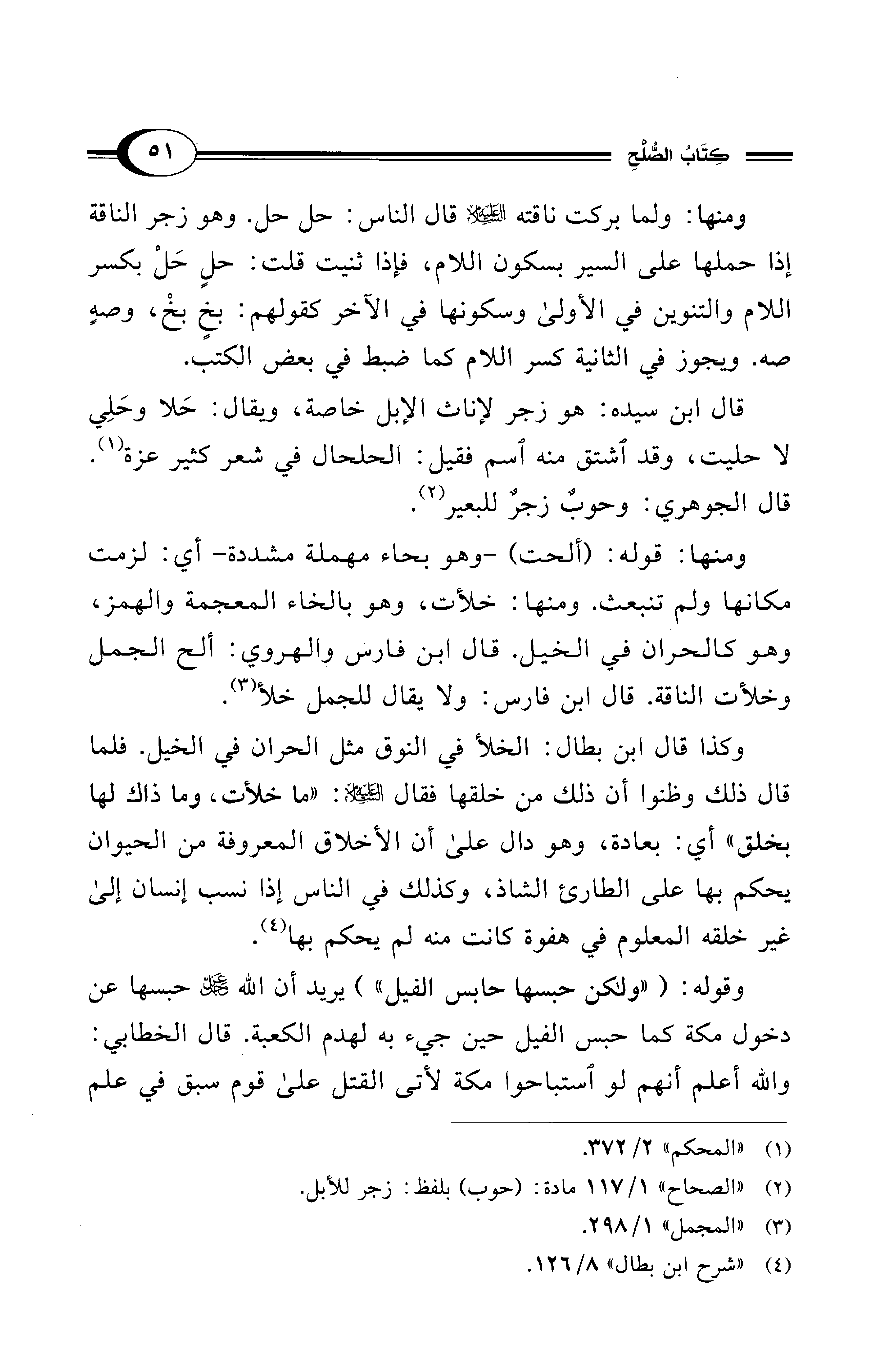 وقوله: ("ولكن حبسها حابس الفيل") يريد أن الله -عزوجل- حبسها عن دخول مكة كما حبس الفيل حين جيء به لهدم الكعبة. قال الخطابي: والله أعلم أنهم لو استباحوا مكة لأتى القتل على قوم سبق في علم